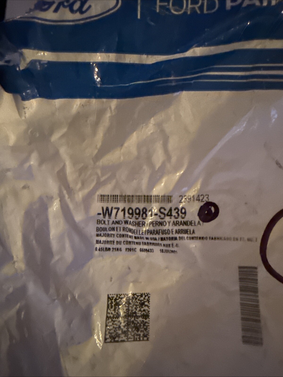 The product is a Genuine Ford OE Bolt And Washer Assembly, specifically the hex head part number W719981-S439. It is a direct replacement part sold individually, designed for use as a genuine OEM component. The bolt and washer assembly is suitable for various car and truck exterior applications, providing a reliable and authentic replacement option.