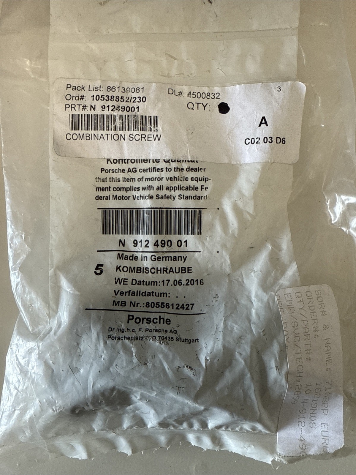 Elevate your Porsche with genuine quality: the Hexagon Bolt with Washer, part number N91249001, is a direct offering from the iconic brand. precision and durability are ensured, as this component is specifically designed to meet the exact standards of your vehicle. It's a perfect choice for maintaining or restoring your Porsche to its optimal performance.