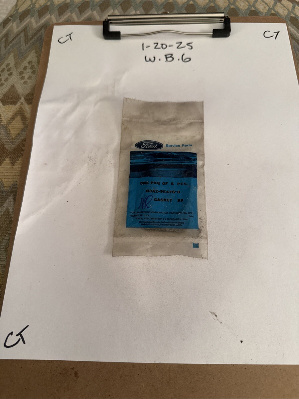 The product is a New Old Stock (NOS) EGR valve body gasket with the part number D3AZ-9E476-B, designed for a 1973 Ford Mustang or Torino with a 351C engine. This genuine Ford part is specifically made to fit this model and engine type, ensuring proper compatibility and function. The EGR valve body gasket plays a crucial role in the emission control system of the vehicle, helping to regulate the flow of exhaust gases and reduce harmful emissions, making it an essential component for maintaining the vehicle's performance and meeting environmental standards.