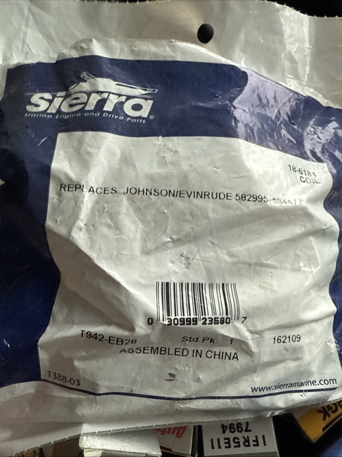 Up for sale is an 18-5181 Sierra Ignition Coil that is compatible with Johnson Evinrude 3HP, 6HP, 9.9HP, and 10HP models. This ignition coil is manufactured in China and is designed to replacement OEM part number 584477. It is a reliable and high-quality component that is perfect for your boat's ignition system. Purchase this ignition coil with confidence and get your boat running smoothly again!