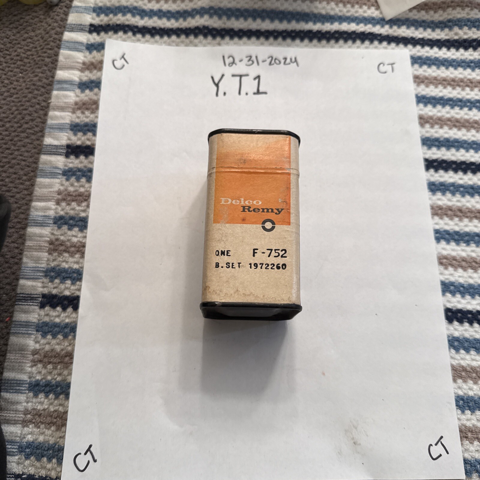 This product is a vintage Delco Remy starter brush set with the manufacturer part number 1972260 and the other part number F-752, suitable for use in 1961-1978 Ford vehicles. The item is described as new old stock (NOS), indicating that it has never been used and is in original packaging. The Delco Remy brand is known for producing high-quality automotive electrical components, making this starter brush set a reliable choice for maintaining or restoring classic Ford vehicles.