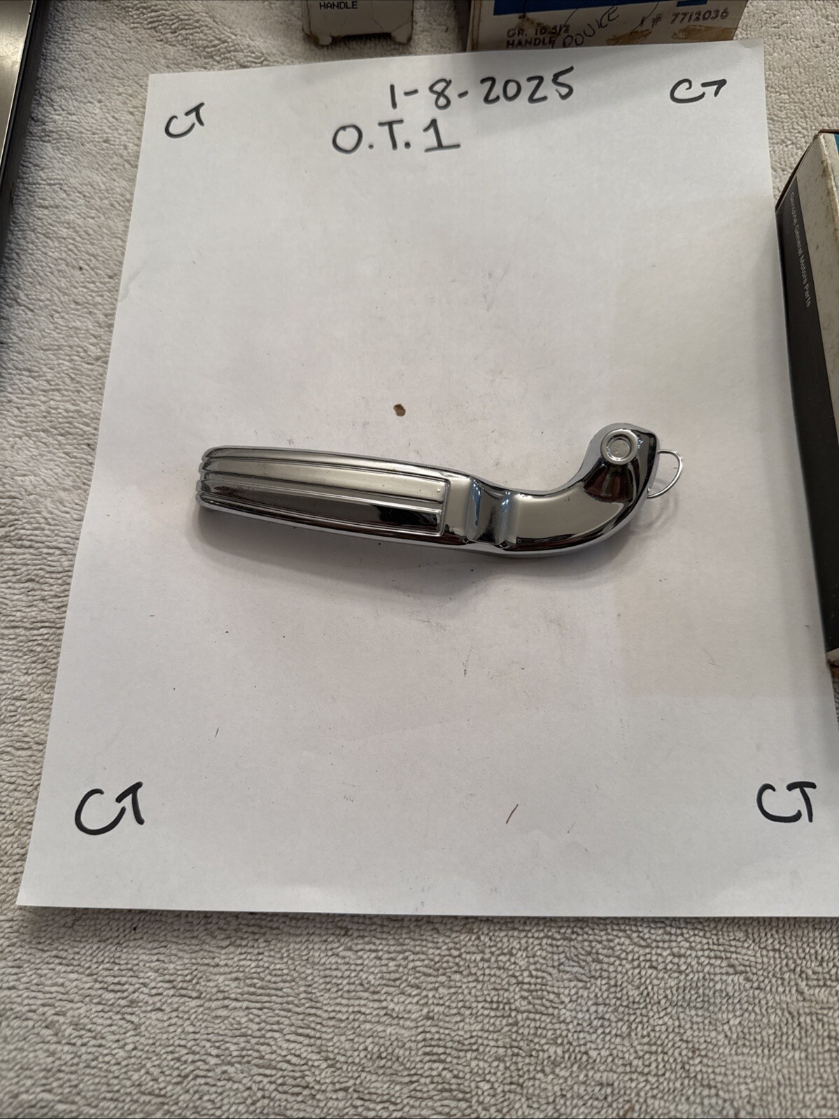 The product is a right-hand side standard interior door handle for 1968-1970 Camaro and Firebird models, with the original GM part number 7743520. This handle is specifically designed for these classic vehicles and is likely a genuine GM replacement part. It is a crucial component for the interior of the car, providing functionality and maintaining the authenticity of the vehicle's original design.