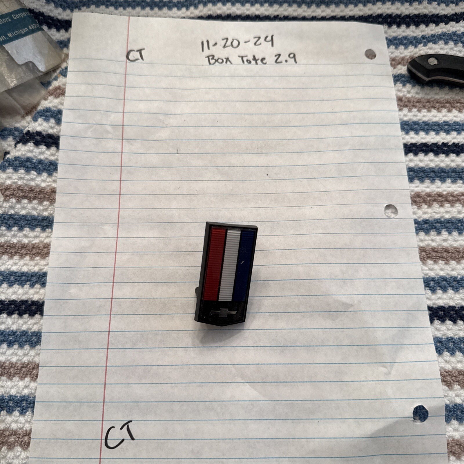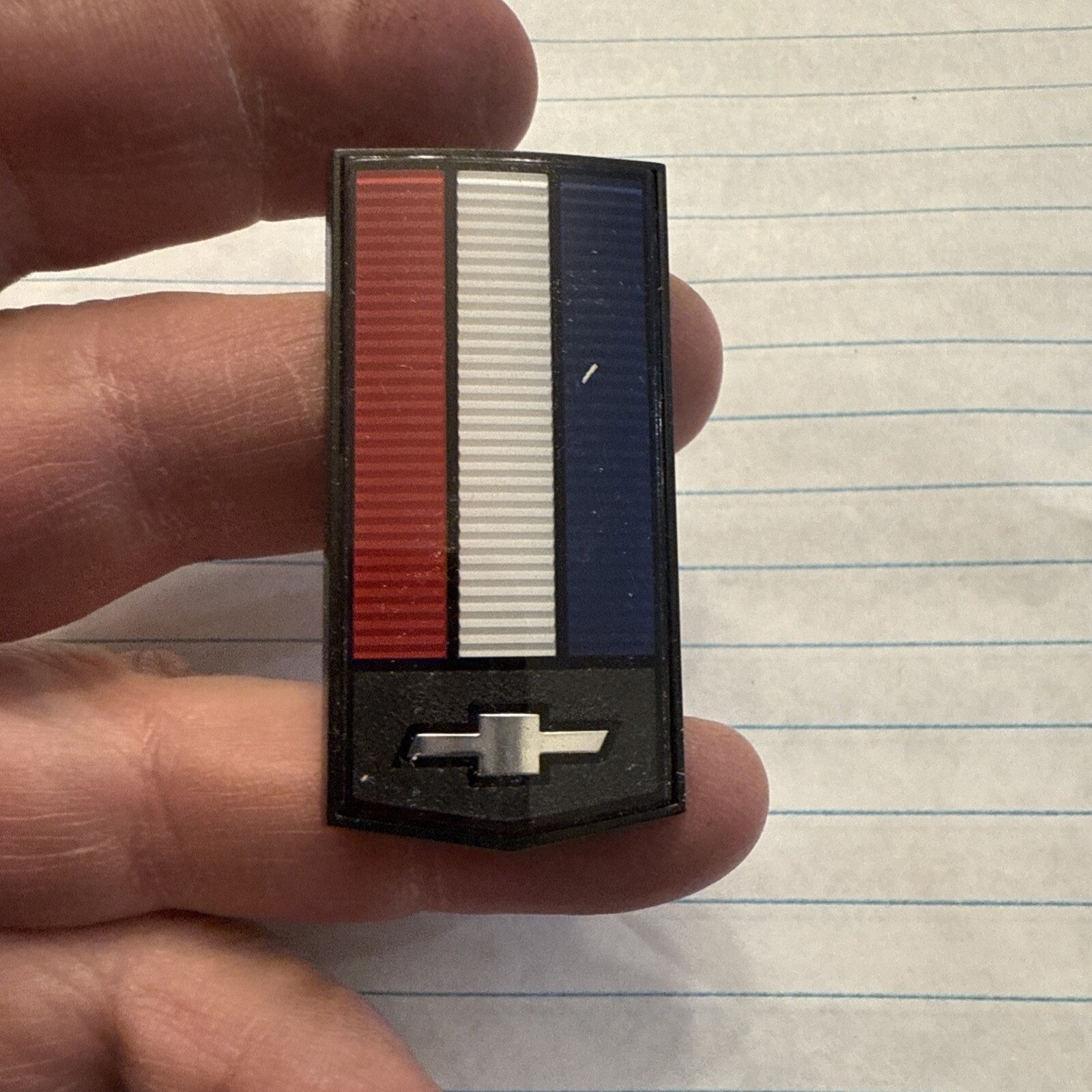 This emblem is a genuine GM part with the manufacturer part number TP-6994 and 14083968. It is a front bumper header panel nose emblem suitable for a 1986-1992 Camaro Z28 IROC-Z RS. The emblem is designed with a custom image of the GM logo in red, white, and blue colors. It is a perfect addition to your car's exterior for those who want to enhance their car's appearance.