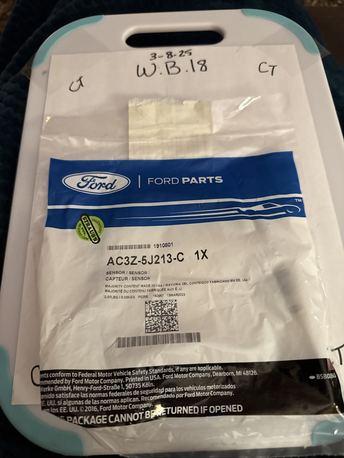The product is a 2011-2019 6.7L Ford Powerstroke Exhaust Gas Temperature (EGT) Sensor with the part number AC3Z-5J213-C. This sensor is an essential component of the exhaust system, designed specifically for Ford vehicles. It is crucial for monitoring the exhaust gas temperature to ensure optimal engine performance and emissions control. The sensor is an OE/OEM part manufactured by Ford, making it reliable and compatible with the specified vehicle models.