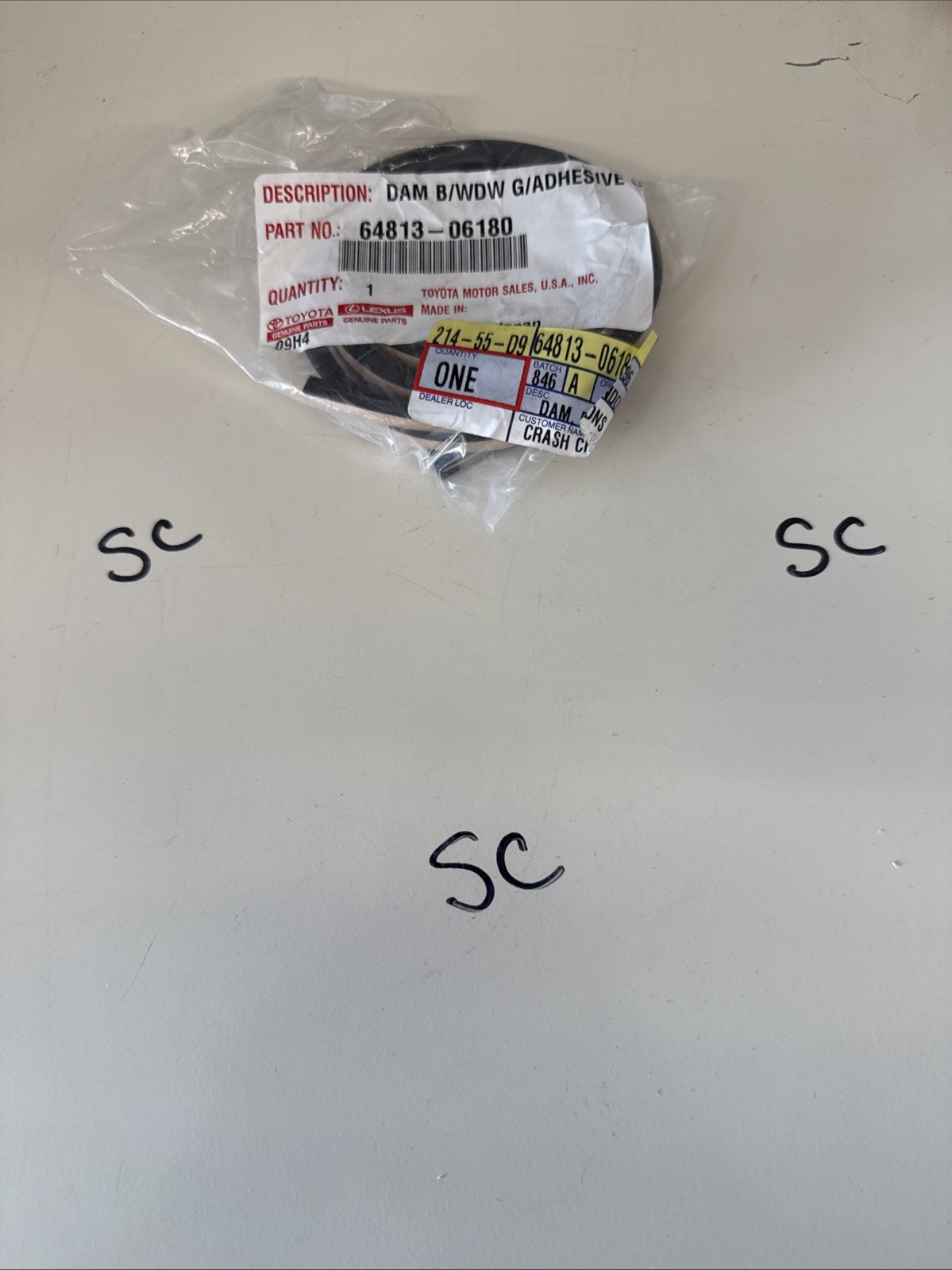 The part, numbered 64813-06180, is an OEM product, assuring compatibility and quality. It's essential for maintaining the integrity of the vehicle's glass and window components, preventing water ingress and ensuring the overall integrity of the car's exterior. This window seal is not a vintage part and is specifically tailored for the rear placement on the vehicle.