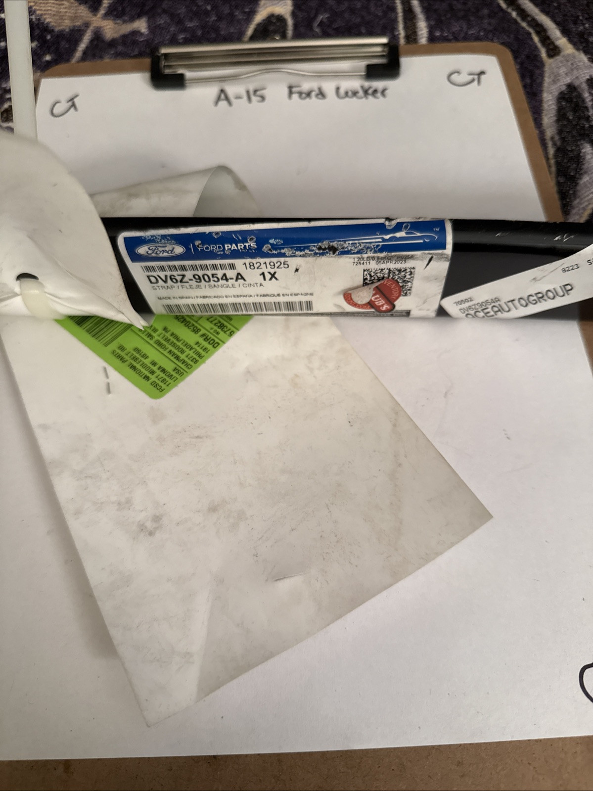 The product is a genuine OEM Fuel Tank Strap (Part Number: DV6Z-9054-A) designed for a used 2019-2020 Ford Transit Connect. This right side fuel tank strap is compatible with the specified vehicle model and year. The manufacturer part number provided is DV6Z-9054-A, ensuring proper fit and function for the Ford Transit Connect. This Fuel Tank Strap is in good condition and suitable for replacement or repair needs.