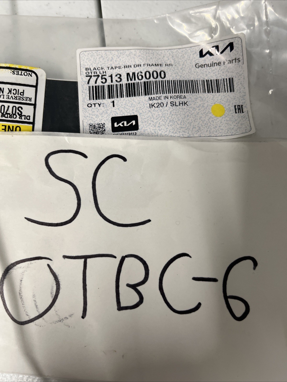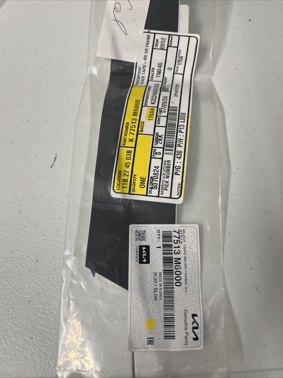 2019 – 2024 Genuine KIA Forte Rear Left Black Out Tape OEM 77513M6000