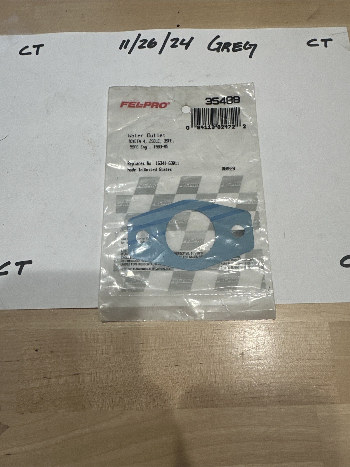 This product is an automotive engine thermostat outlet gasket made by Fel-Pro. The gasket is designed to fit seamlessly into the outlet of your engine's thermostat housing, ensuring a perfect seal every time. It is made in the USA and has the part number 35488. This gasket is a high-quality replacement part that will help to prevent leaks and ensure that your engine stays cool and healthy.