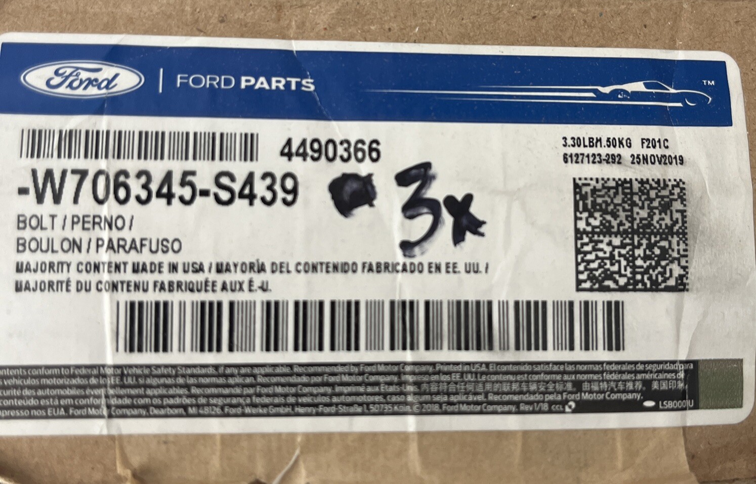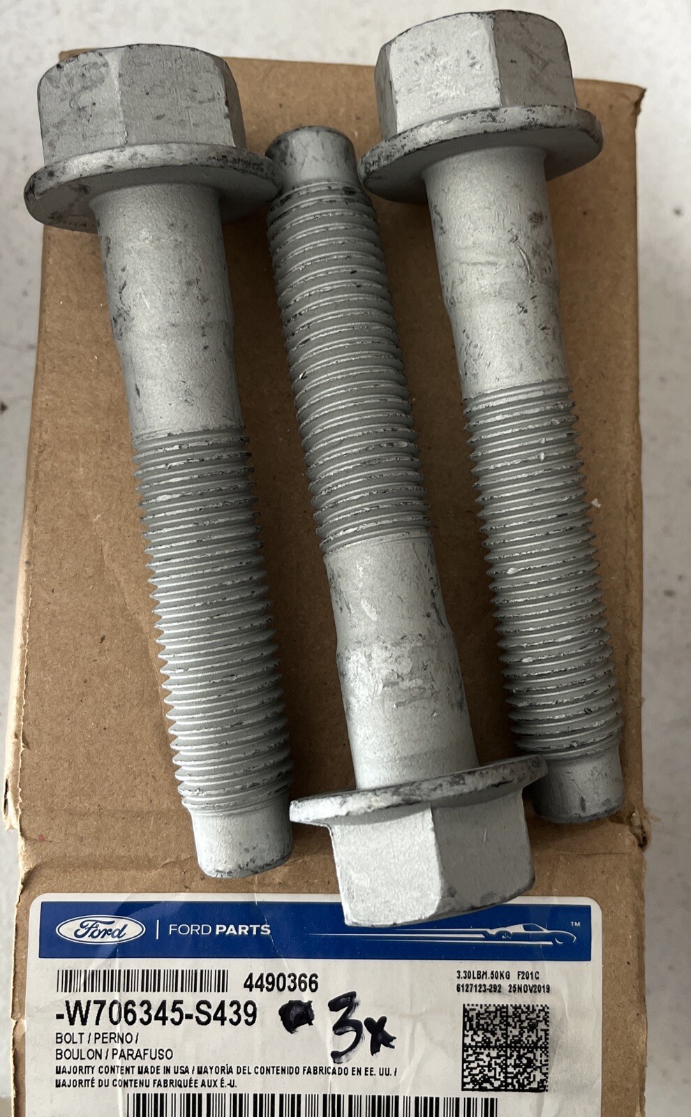 3pcs Genuine OEM Ford W706345-S439 Bolt 99-19 Super Duty Excursion NOS (box opened and part inspected)