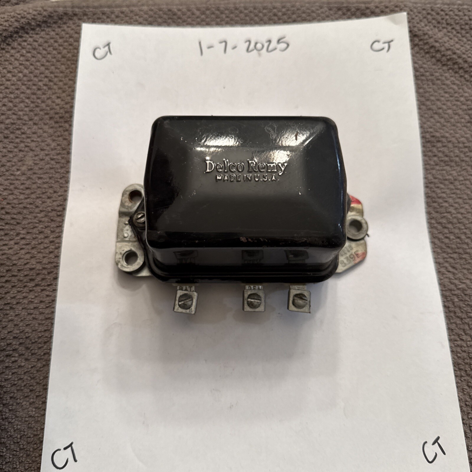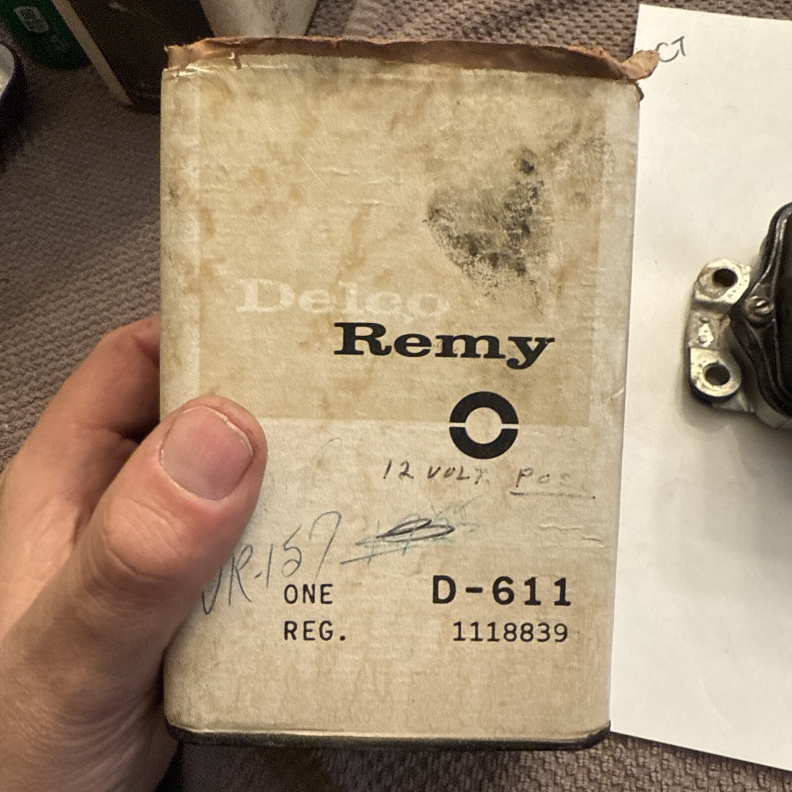 The product is a vintage Delco Remy GM 1118839 Voltage Regulator designed for 1953, 1954, and 1955 Cadillac models. It is a New Old Stock (NOS) item, meaning it has never been used or installed, and is intended for 12-volt positive ground systems. The part number D-619 indicates it is a genuine Delco Remy replacement part specifically made for General Motors vehicles of the era. This regulator is essential for maintaining the correct voltage output from the generator to the battery in the electrical system of classic Cadillac vehicles.