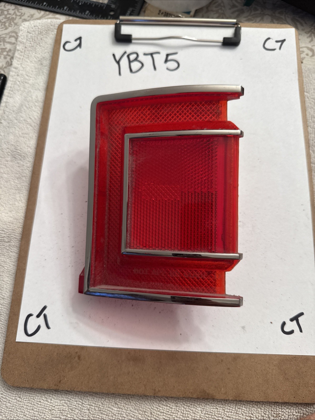 This is a NOS (New Old Stock) side marker light assembly for a Chevrolet Citation, model years 1980-1985. The assembly is chrome red and fits on the rear left side of the vehicle. It is a vintage part made by General Motors and features an incandescent lighting technology. The lens color is red and the housing color is chrome.