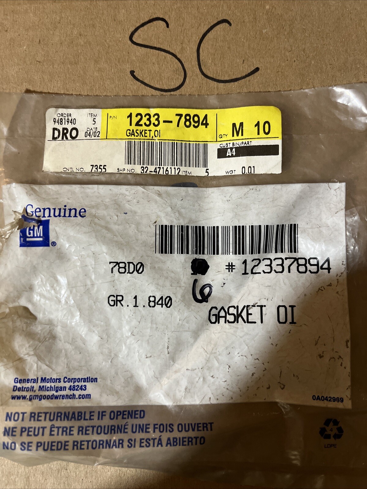 6x OEM ENGINE OIL FILTER ADAPTER GASKETS GM # 12337894 NOS