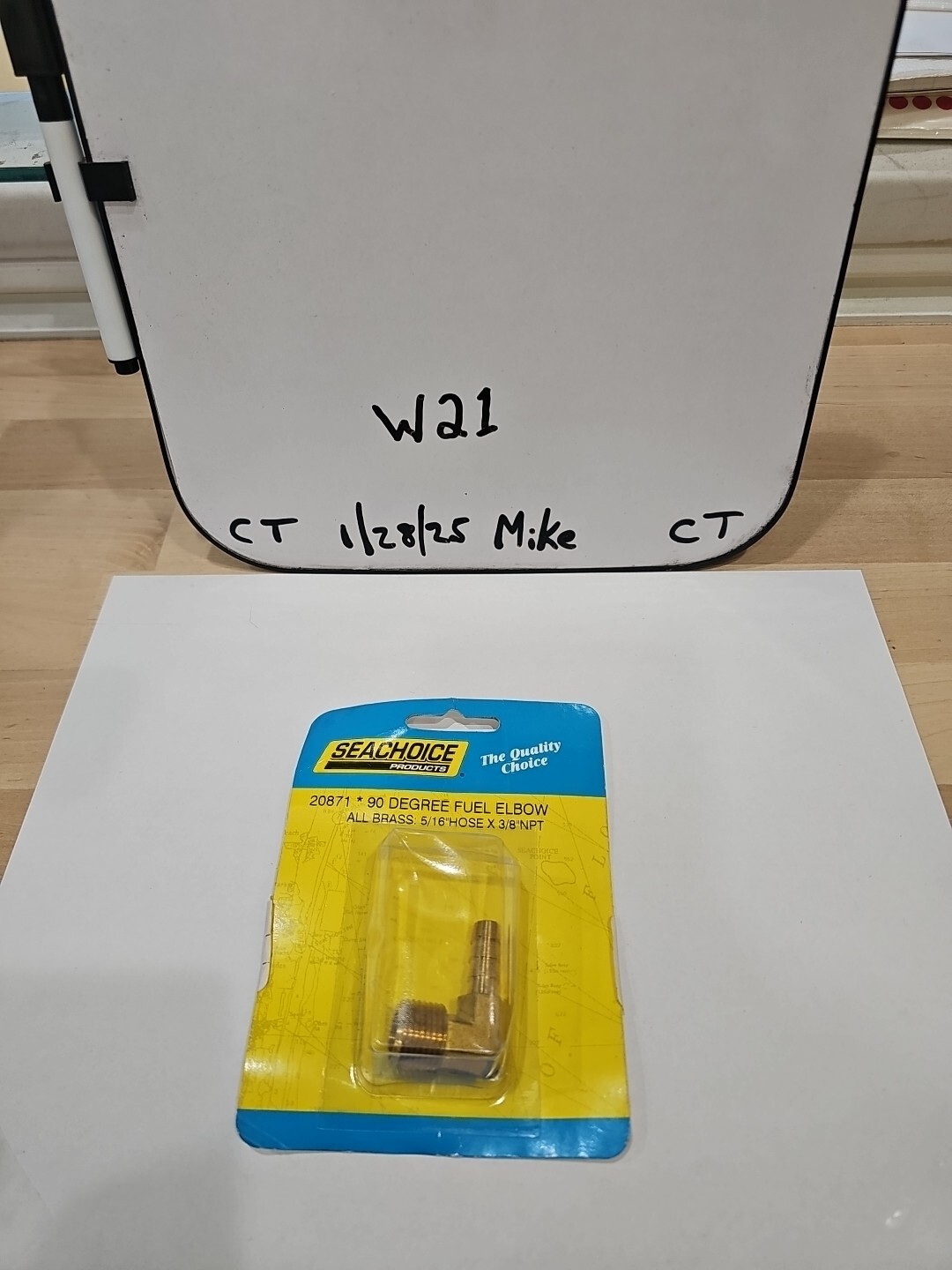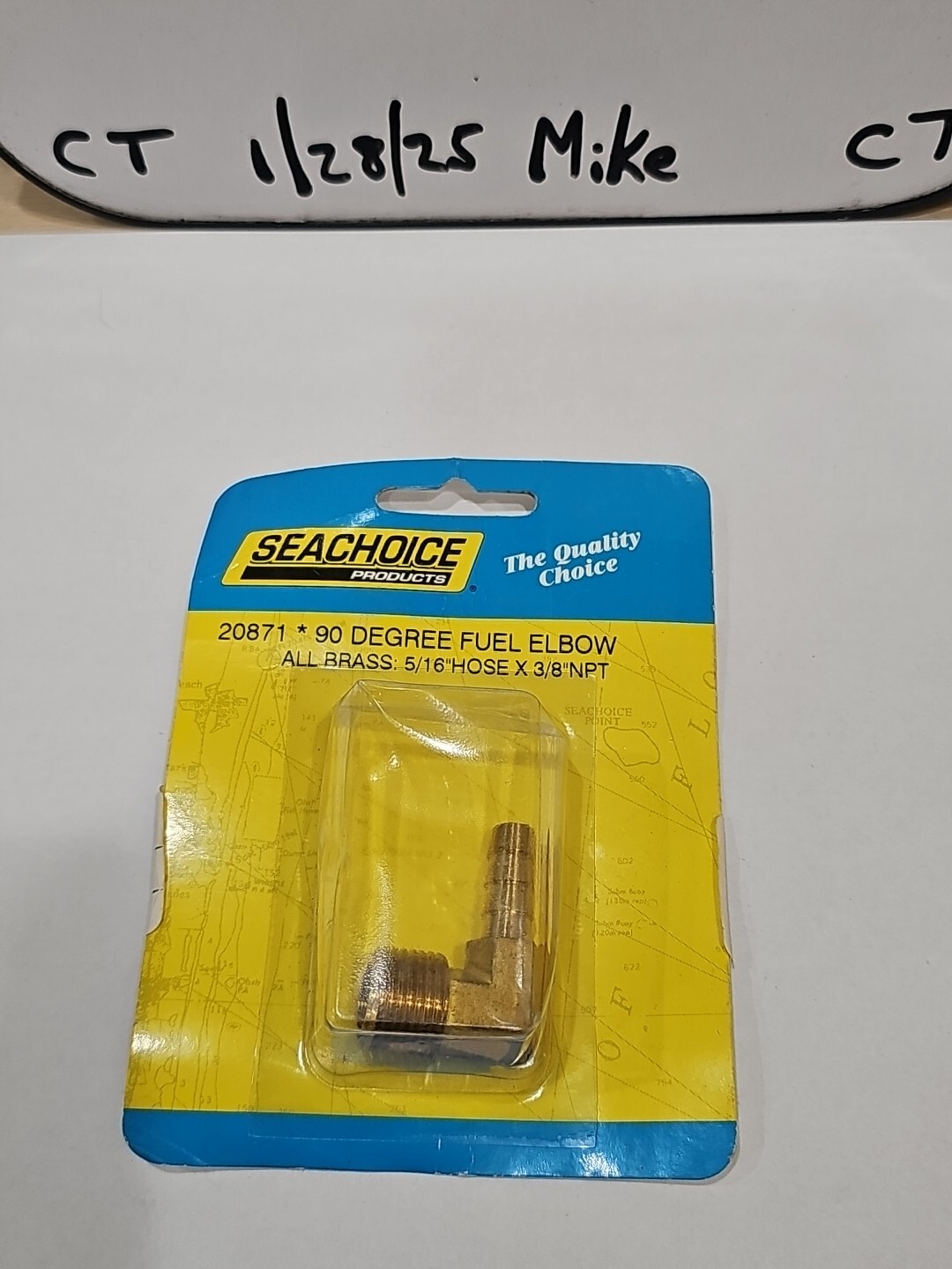 The 90 Degree Marine Brass Fuel Elbow Fitting is manufactured by Seachoice with a part number of 20871. It features a 5/16 inch barb on one end and a 3/8 inch NPT (National Pipe Thread) on the other end, providing a secure and leak-free connection for fuel lines in marine applications. Made of durable brass, this fitting is designed to withstand the harsh conditions of marine environments, ensuring reliable performance and longevity. Perfect for plumbing and ventilation systems on boats, this fuel elbow fitting is a essential component for maintaining proper fuel flow.