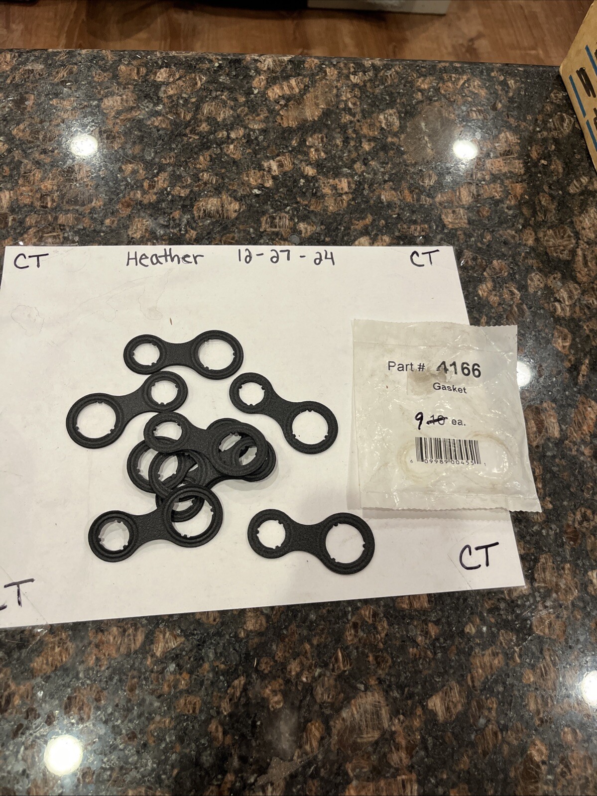 The product is A/C Compressor Gaskets with OE/OEM Part Number 4166. These gaskets are black in color and are intended for use in automobiles. They are designed specifically for AC compressor applications.