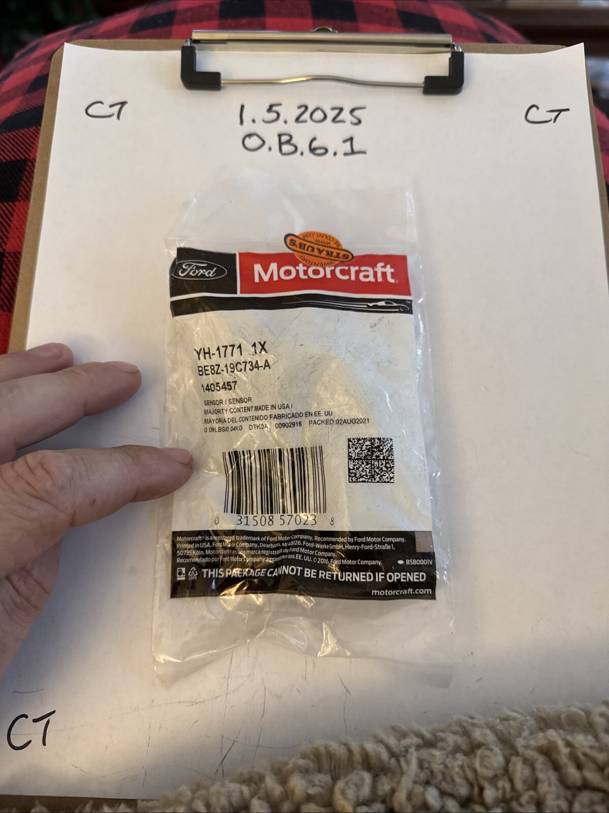 The product is an A/C Evaporator Temperature Sensor manufactured by Motorcraft, suitable for various Ford vehicles including Escape, Fiesta, and Focus, as well as Lincoln models. The sensor has an Interchange Part Number of BE8Z19C734A and a Manufacturer Part Number of YH-1771. It comes with a Manufacturer Warranty and is sold individually with a SKU of MAC:YH1771. This sensor plays a crucial role in regulating the temperature within the vehicle's air conditioning system, ensuring optimal functionality and comfort for the occupants.