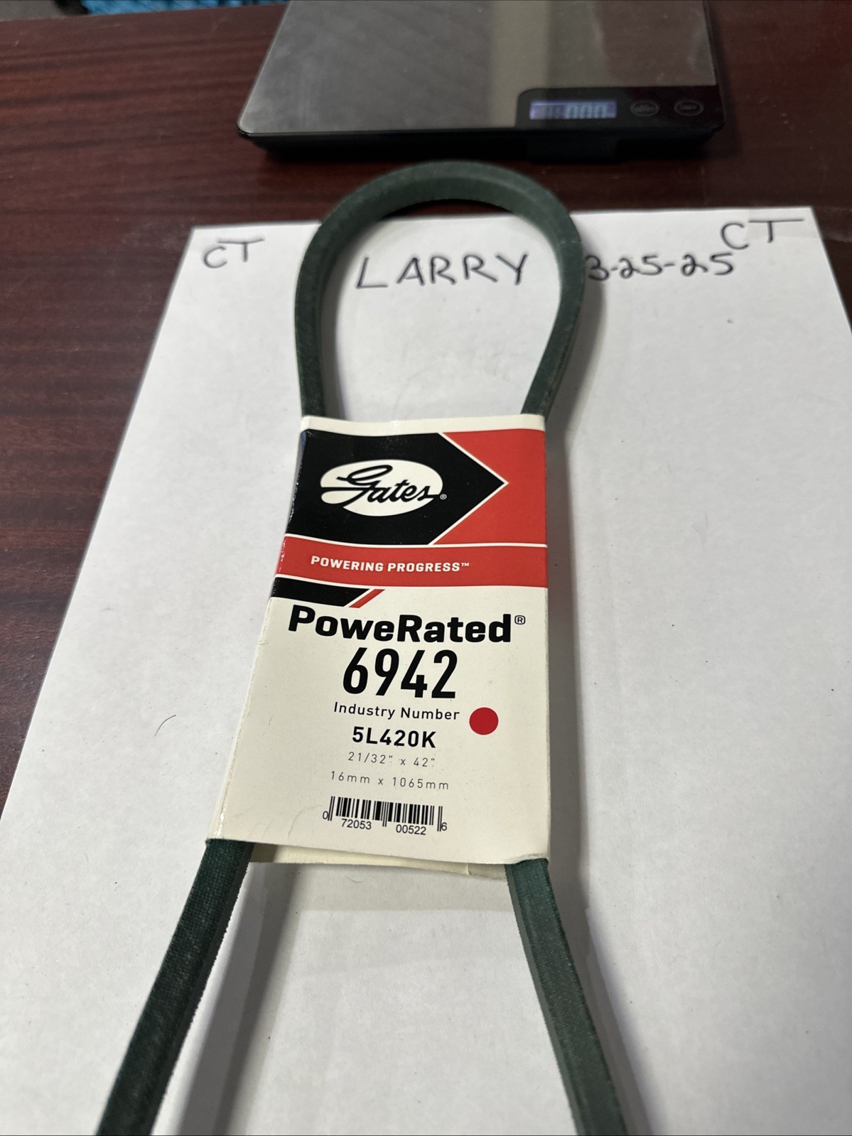 This high-quality accessory drive belt from Gates is designed for medium horse-power vehicles. The V-belt is made by one of the most trusted brands in the industry, ensuring reliability and durability. With a unique manufacturer part number of 6942, this belt is a perfect fit for your car or truck.