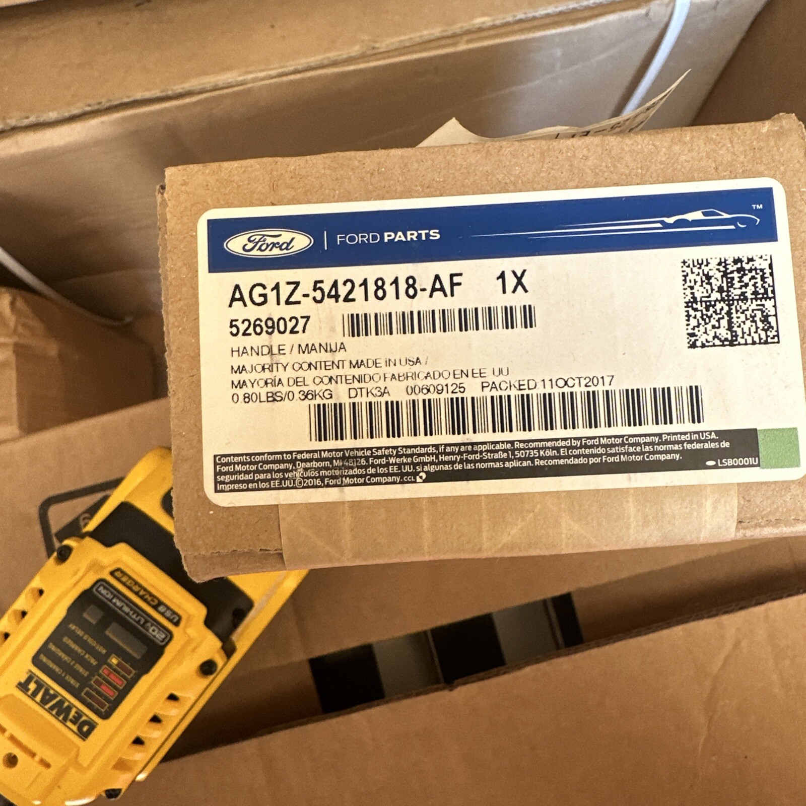 This is a genuine OEM Ford Taurus-Interior Inside Door Handle Right, suitable for direct replacement from 2013-2015. The handle is made of durable plastic with a chrome finish, and comes with no manufacturer warranty. It is a one-piece item and fits perfectly on the right side of the vehicle.