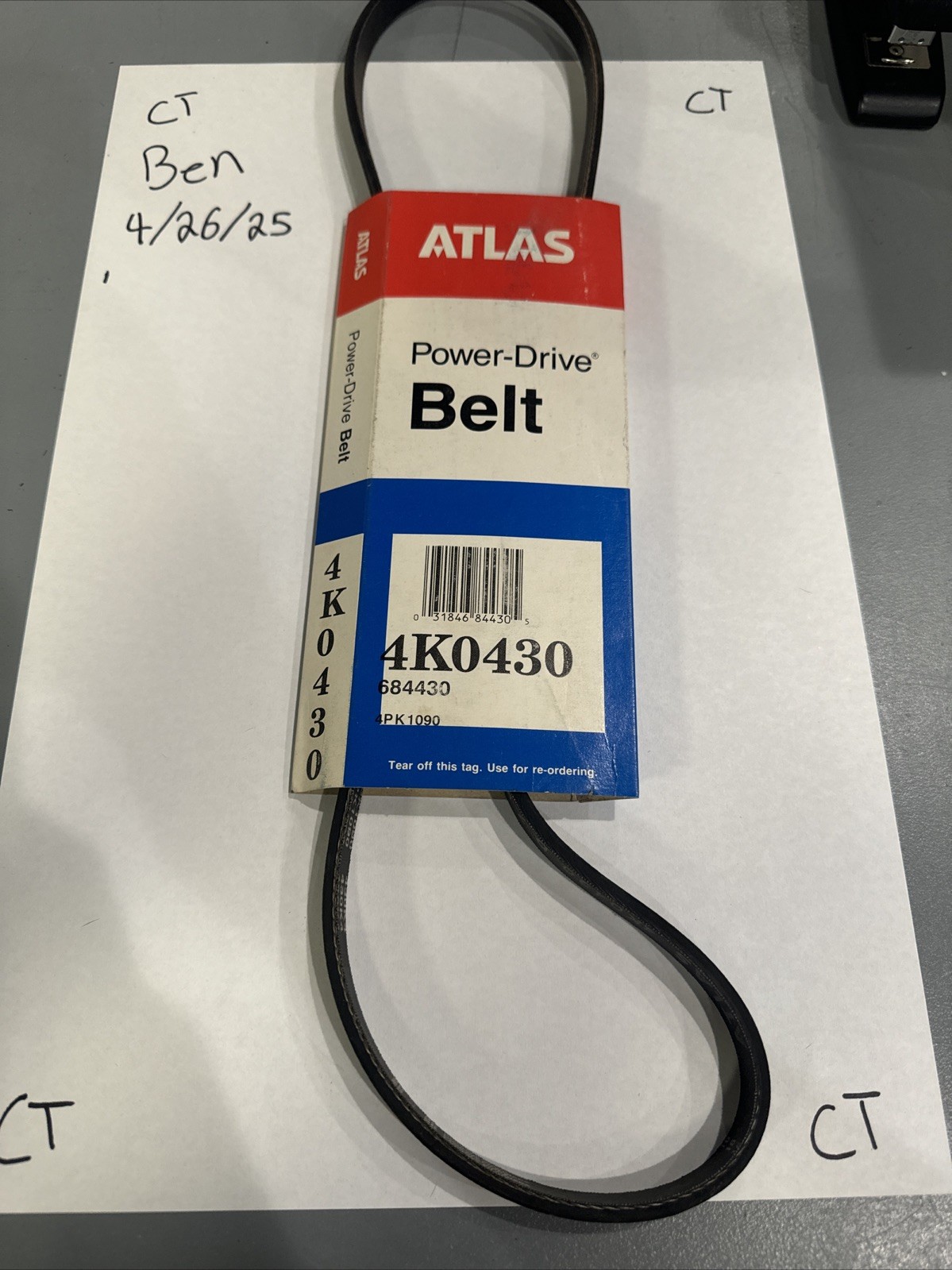 This product is a drive belt manufactured by Atlas, specifically designed for use in cars and trucks. It is a replacement part for accessory belts and other belt parts, with the brand name "Atlas" indicating its quality and reliability.
