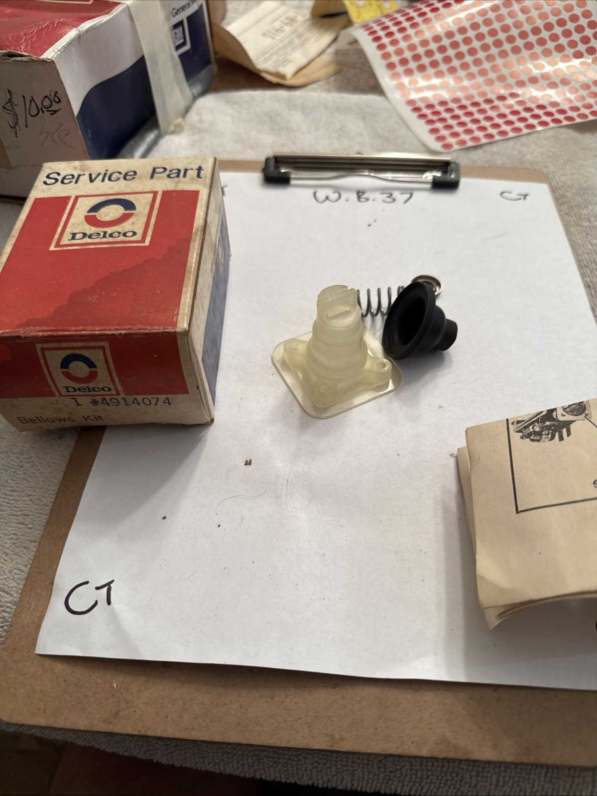 This is a vintage Delco GM windshield washer pump bellow kit with part number 4914074. It is a new old stock item that has never been used before. The kit is made of mixed materials and is designed to fit certain car and truck models. It is important to check the compatibility of this part with your vehicle before purchasing. The kit is sold as-is with no warranty included.