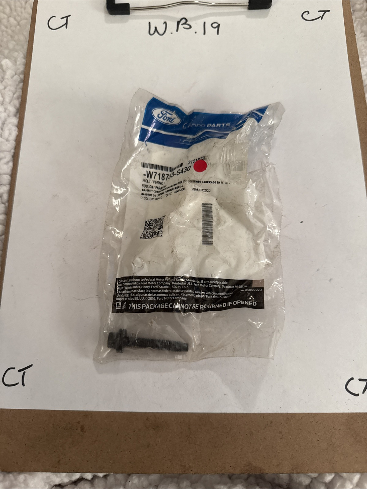 The product is a Bolt designed specifically for Ford vehicles, with the part number W718733-S430. It is a genuine Ford part, indicating it is manufactured by the Ford brand in the United States. This bolt is likely used for securing various components in Ford vehicles, ensuring a proper fit and reliable performance. It is a crucial part for maintaining the integrity and functionality of the vehicle's components.