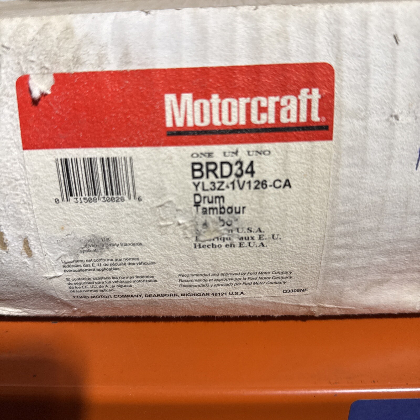 The product is a Motorcraft Brake Drum with the manufacturer part number BRD34 and OE/OEM part number YL3Z1V126CA. It comes with a 1-year manufacturer warranty and is sold individually. The SKU for this item is PR:BD8974. This brake drum is designed for use in car and truck brake systems, providing a crucial component for safe and effective braking performance. It is a genuine Motorcraft product, ensuring quality and compatibility with specific vehicle models.
