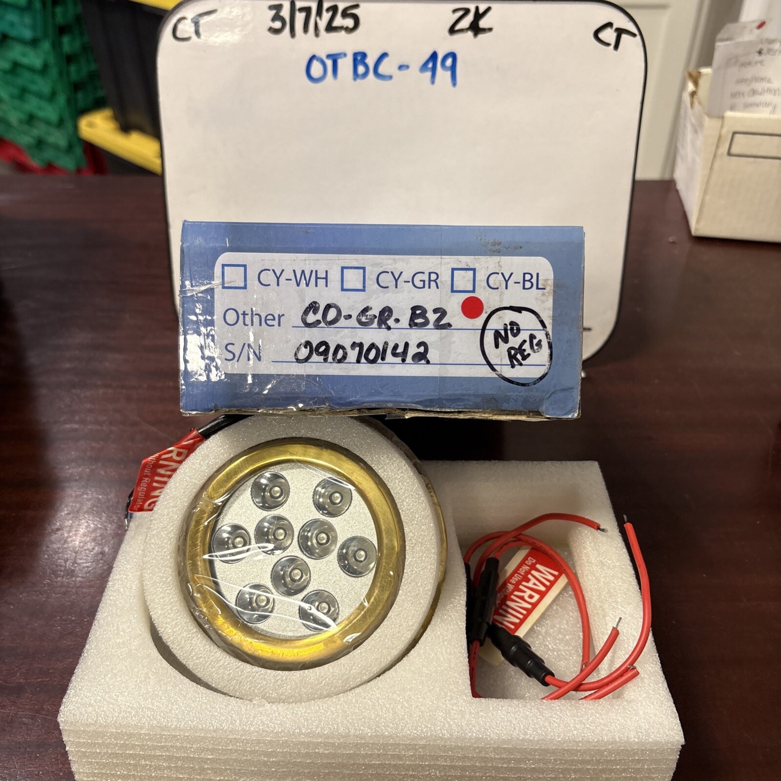 The product is a Briter Innovations LED Underwater Light with the manufacturer part number 09070142. Specifically model CO-GR-B2, this light is designed for underwater use on boats. The product does not require registration (No REG), making it a convenient and user-friendly option for boat owners looking to add illumination to their vessel's underwater surroundings.
