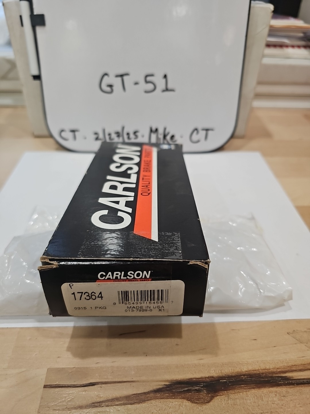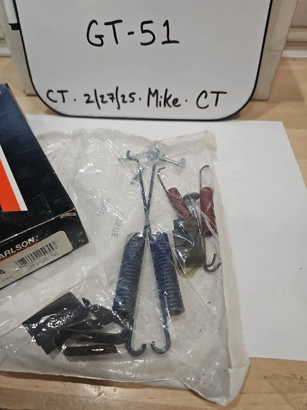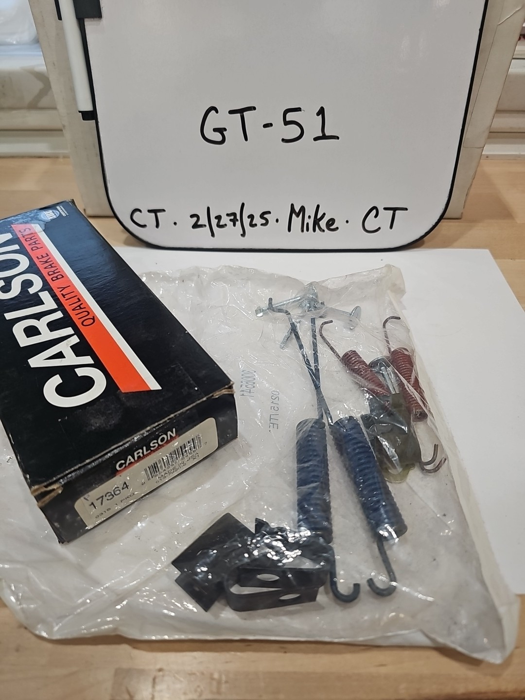 The product is a Carlson 17364 Drum Brake Hardware Kit in a sealed bag, listed as new old stock. It is designed for brake pads and is manufactured by Carlson. This kit includes all necessary hardware for a drum brake system, providing convenience for maintenance or repair tasks. The EPID for this product is 75465274 and the manufacturer part number is 17364.