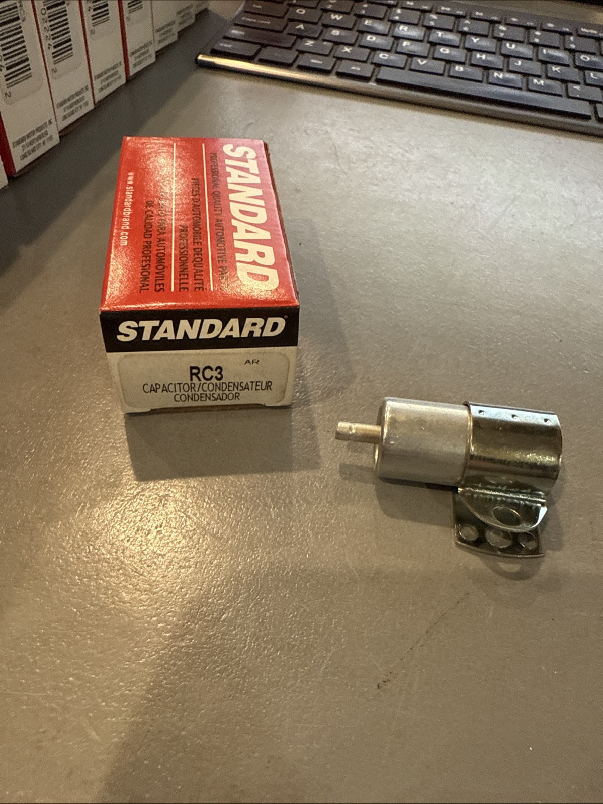 The product is a single ignition capacitor with a manufacturer warranty, designed to fit 1974-1976 Pontiac models such as Firebird, Bonneville, Catalina, and Grand Prix. The manufacturer part number is RC-3, and the SKU is also listed as RC-3. This ignition capacitor is a standard component used in ignition systems to store and release electrical energy to facilitate the spark needed for engine combustion. It is a crucial part for ensuring proper ignition function in the specified Pontiac vehicles from the mid-1970s.