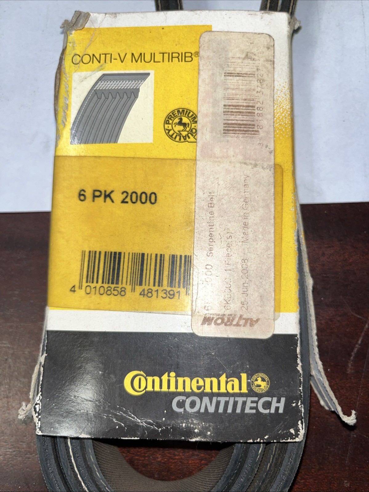 This product is a Continental brand belt with a manufacturer part number of 6pk2000. It is designed to be used in cars and trucks as an accessory belt. The belt is sold in a pack of six and is made to fit a variety of vehicle models.