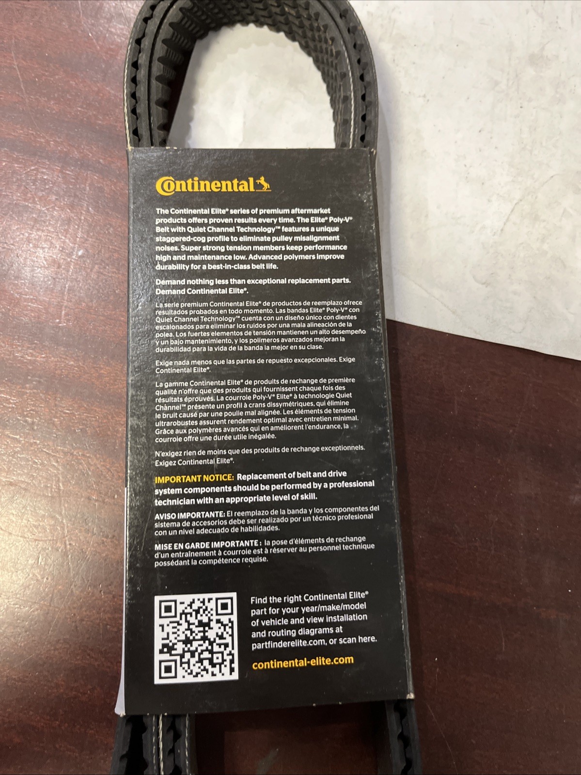 Whether you're replacing a worn-out belt or upgrading to a premium replacement part, this Continental Elite serpentine belt is an excellent choice. Its multi-V design ensures even distribution of tension and load, while its robust construction helps to prevent cracking and failure. Trust in this top-brand belt to keep your vehicle running smoothly and efficiently.