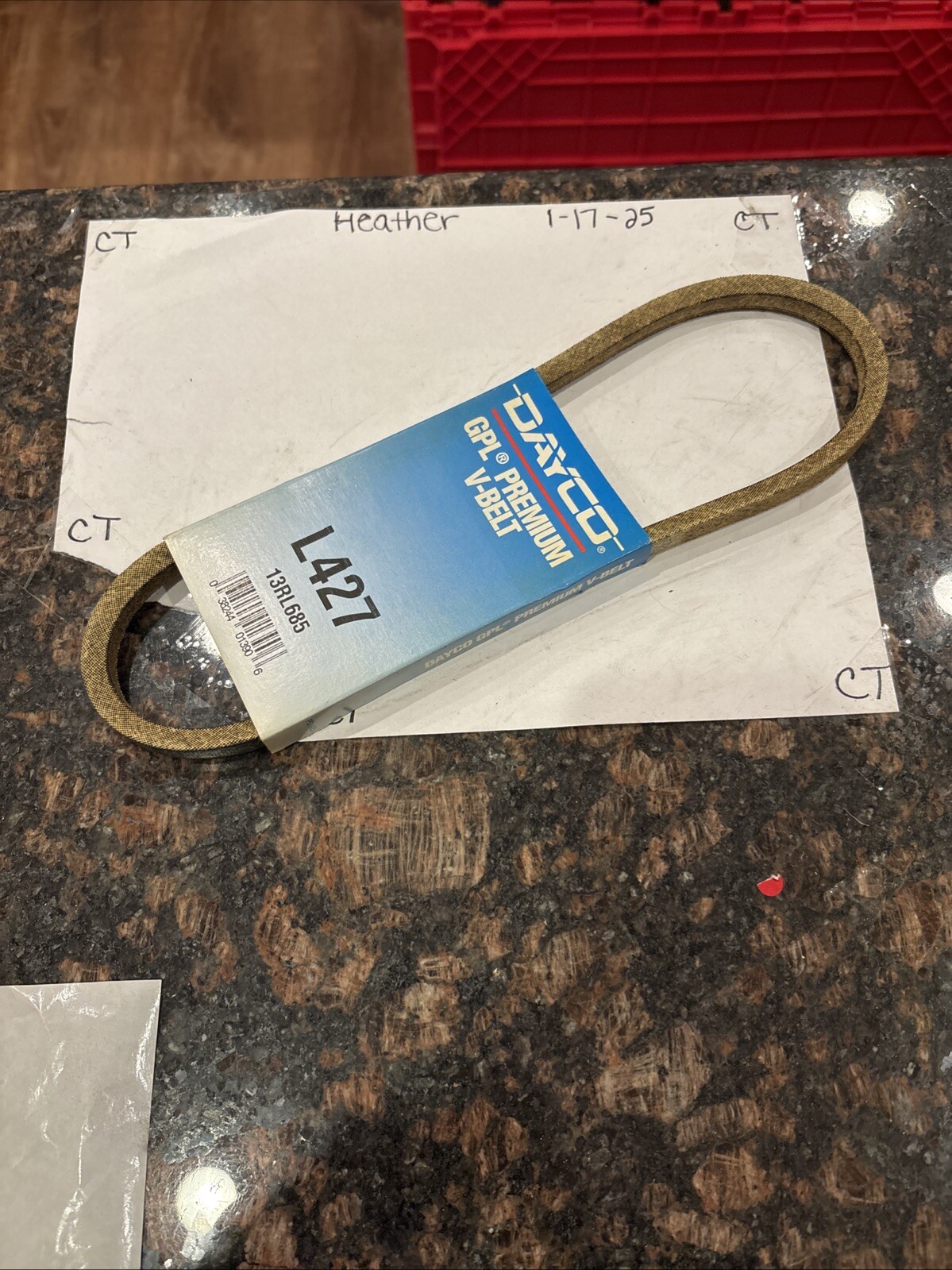 The product is a Dayco GPL Premium V-Belt model L427, specifically designed with the interchange part number 13RL685. This V-Belt is manufactured by Dayco, a reputable brand known for producing high-quality automotive parts and accessories. The Dayco V-Belt is designed to provide reliable performance and durability in various car and truck applications, making it a crucial component for maintaining the proper functioning of the engine's accessory belts.