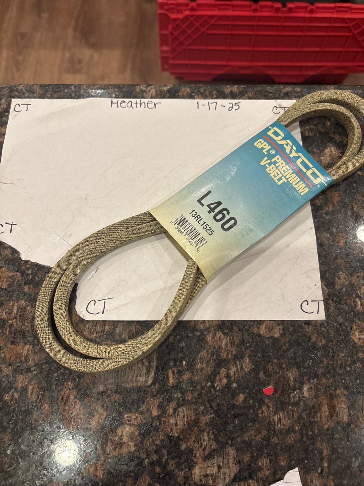 The product is a Dayco L460 accessory drive belt with interchange part number 13RL1525. It is designed for use in cars and trucks as part of the accessory belts system. The Dayco brand is known for producing quality automotive belts, and this particular model is specifically labeled as L460. This drive belt is essential for powering various accessories in the vehicle such as the alternator, water pump, and power steering pump, ensuring proper operation and performance of these components.