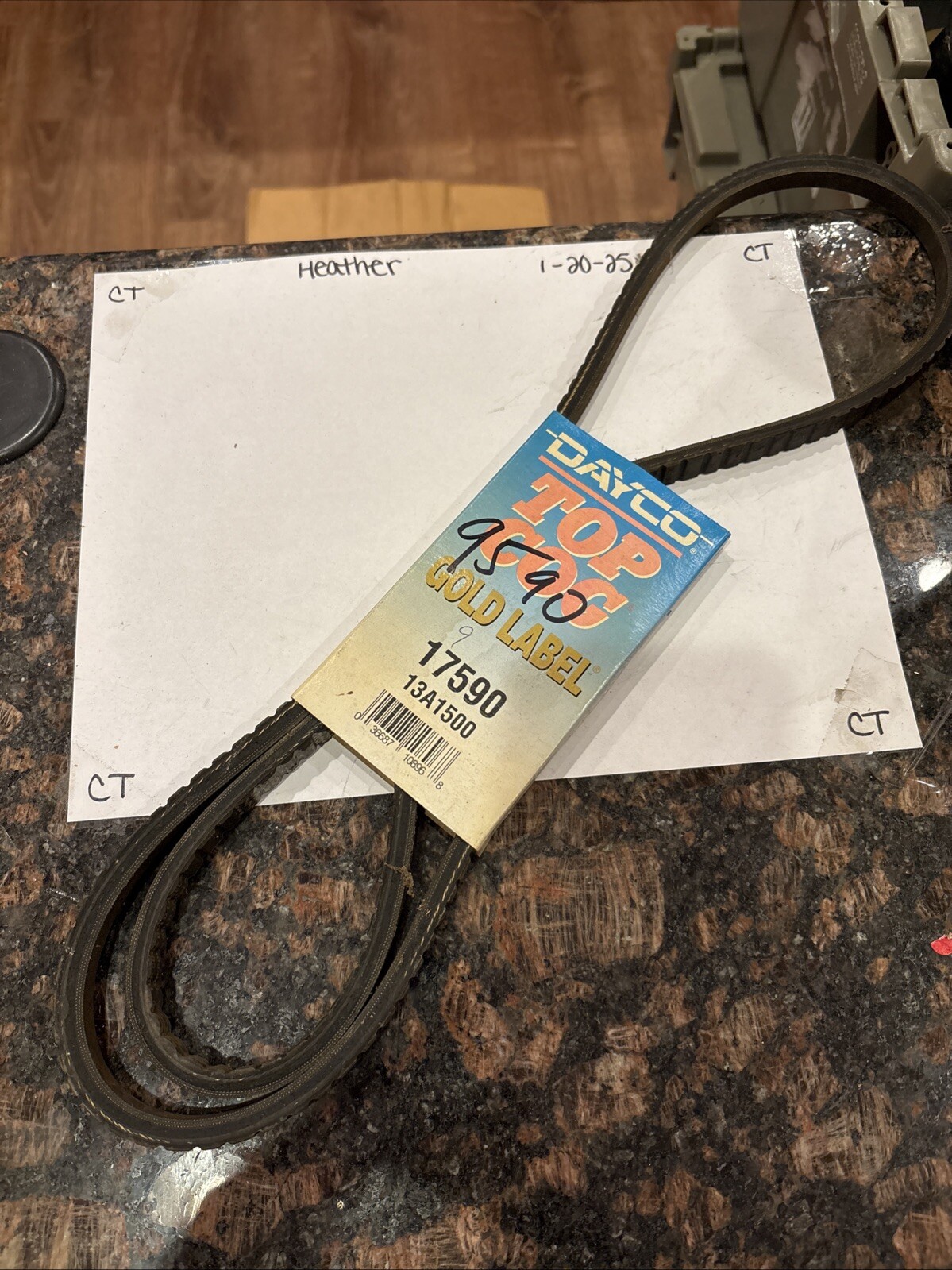 The product is a Dayco Top Cog Gold Label V-Belt with a manufacturer part number of 17590. It is designed as a V-Belt for use in various vehicles. The Dayco Top Cog Gold Label V-Belt is a high-quality accessory belt known for its durability and reliability. This specific belt has a length of 13A1500, indicating its compatibility with certain vehicle models. It is a trusted product from Dayco, a reputable brand known for producing top-notch automotive belts.