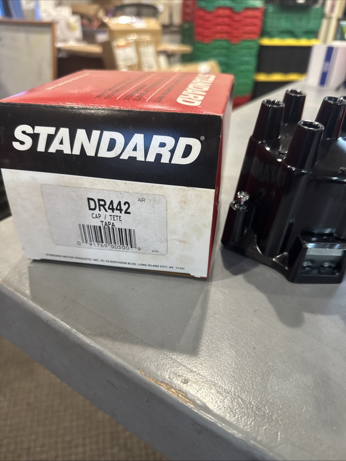 The distributor cap is manufactured by Standard and is designed to fit 1966-1971 Jeep Commando, Jeepster, CJ5, and CJ6 models. It is a single unit with a manufacturer part number of DR-442 and a SKU of DR-442. The product comes with a warranty, although the specific details of the warranty are not specified. It is suitable for use in the ignition systems of cars and trucks, specifically in the distributor caps of these Jeep models.