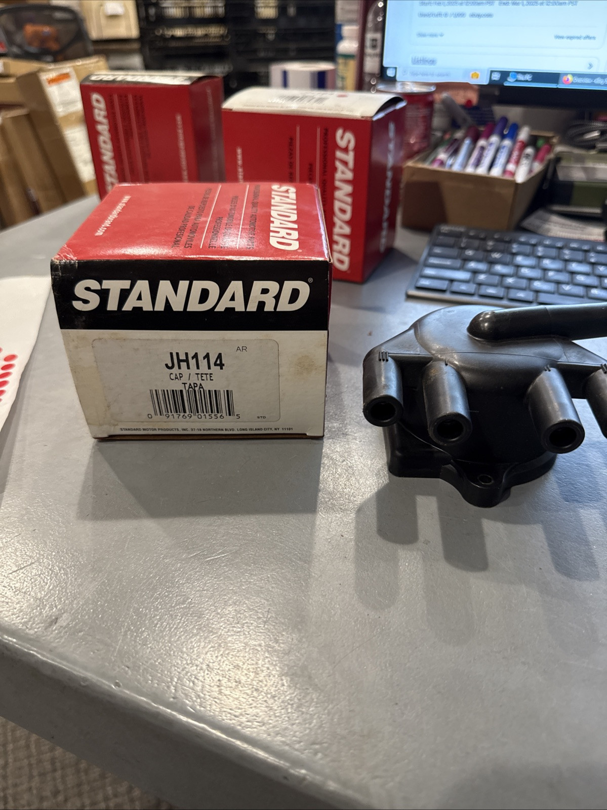 The Distributor Cap Standard JH-114 NOS is a single piece distributor cap manufactured by Standard Motor Products. It is designed to be placed on the front of a vehicle as part of the ignition system. The manufacturer part number for this distributor cap is JH-114, indicating compatibility with specific vehicle models. This NOS (New Old Stock) distributor cap is brand new and has not been used, making it a reliable and high-quality replacement part for maintaining the efficiency of the ignition system in a vehicle.