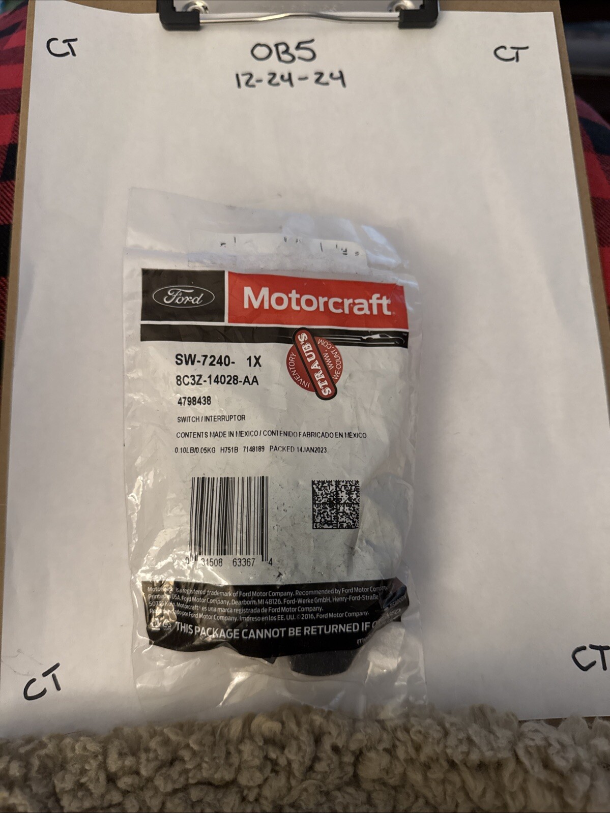 The product is a Motorcraft SW-7240 Door Lock Switch designed for a vehicle's door. It is a single quantity item with manufacturer part number SW-7240 and SKU 189:SW-7240. The switch is a genuine Motorcraft part, ensuring quality and compatibility with the vehicle's original components. This door lock switch is a crucial component for controlling the locking mechanism of the vehicle's door, providing convenience and security for the driver and passengers.