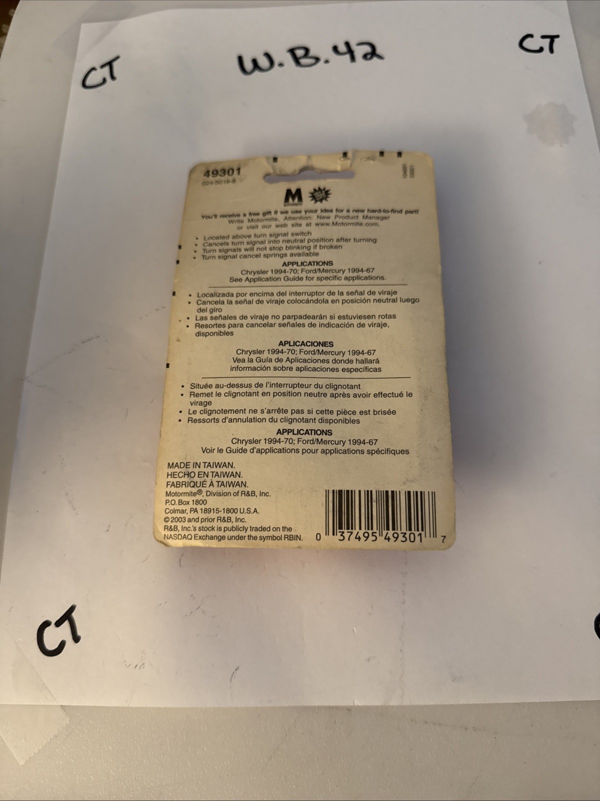 This Dorman 49301 Turn Signal Cam is a switch assembly designed to control the turn signal on various AC, Chrysler, and Ford models from 1967-91. The cam is made in the United States and is a vintage part that is no longer available as a performance part. It is white in color and is placed on the steering column of the vehicle. This switch is a reliable and durable option for those in need of a replacement.