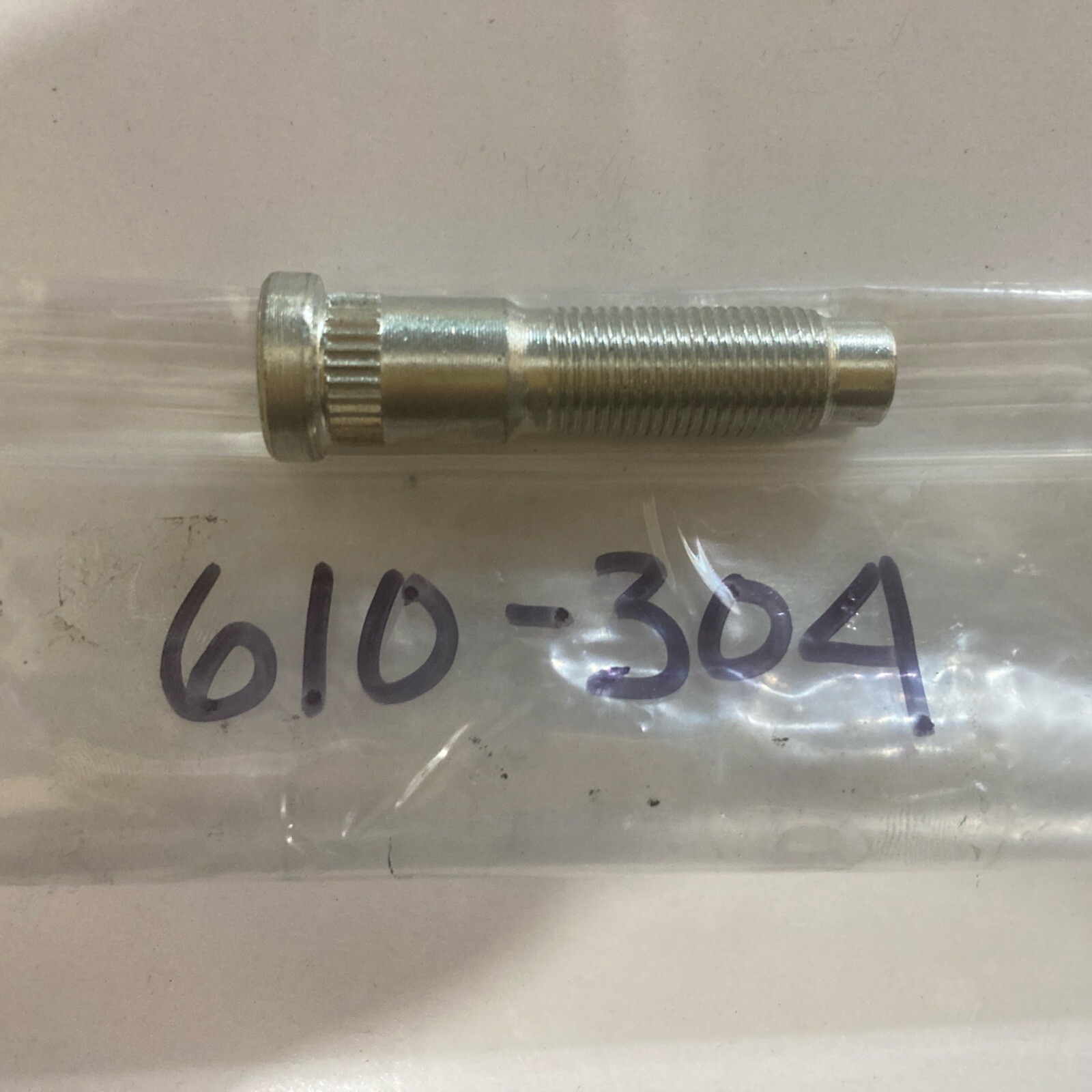 The Dorman 610-304 Lug Stud Bolt is a wheel accessory designed specifically by Dorman. It is a stud type lug bolt included in the package, ideal for use with wheels, tires, and other related parts in the automotive industry.