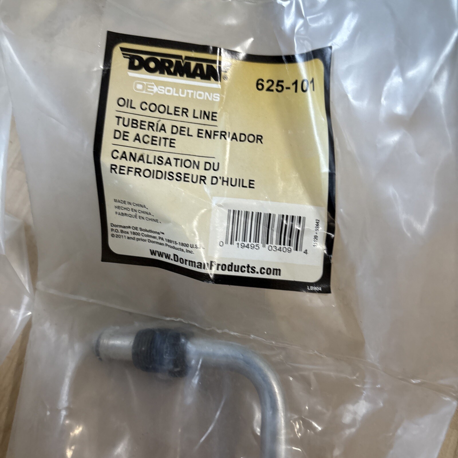 The Dorman 625-101 OE Solutions Oil Cooler Line is a replacement part designed for use in cars and trucks. It is a type of engine oil cooler line, which is used to circulate oil from the engine to the oil cooler. The part is made by Dorman, a brand known for producing high-quality automotive replacement parts.