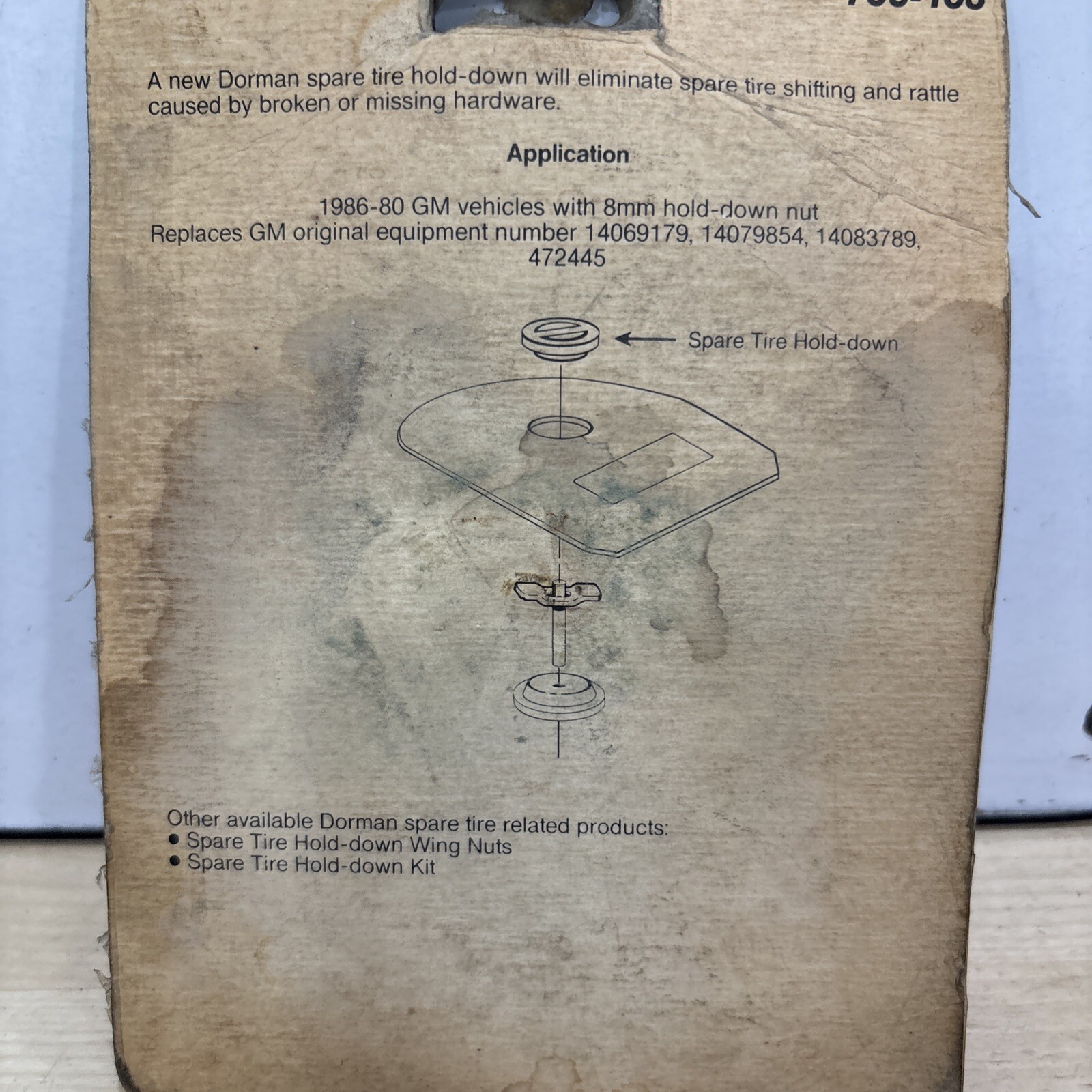 The Dorman 705-103 Spare Tire Hold-Down is designed for GM vehicles manufactured in 1980 and features an 8mm size. This spare tire hold-down ensures that your spare tire is securely fastened in place, providing peace of mind during travel. Dorman, a trusted brand in automotive parts, offers this essential component to help you safely transport a spare tire in your vehicle.