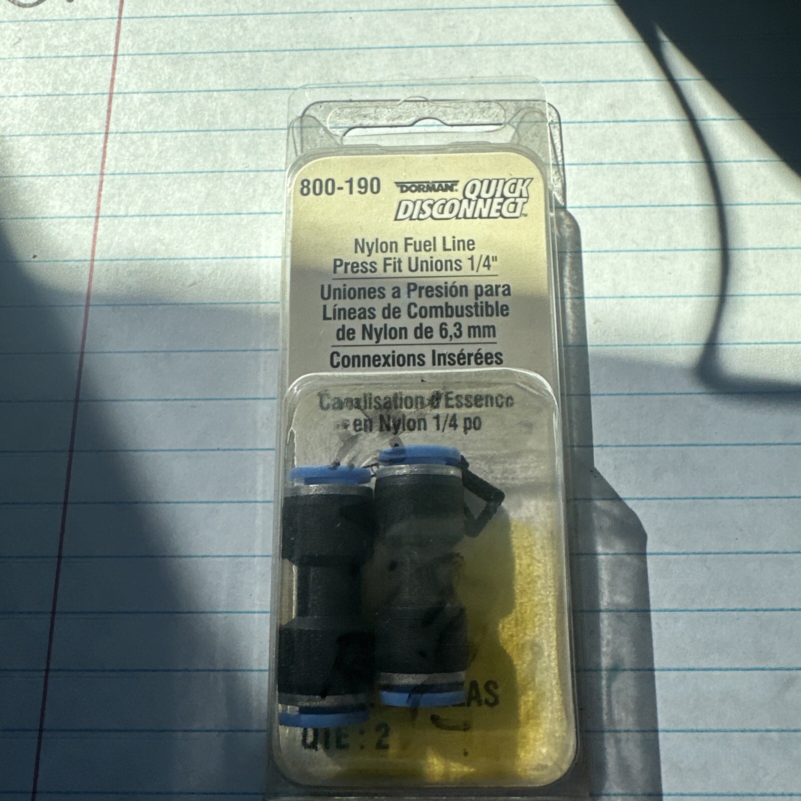 The package contains nylon fuel line unions, and the manufacturer part number is 800-190. This product is compatible with various car and truck models and is made in Taiwan. With none fitting attachment end types 2 and 1, this connector is a great choice for your fuel line connexion.