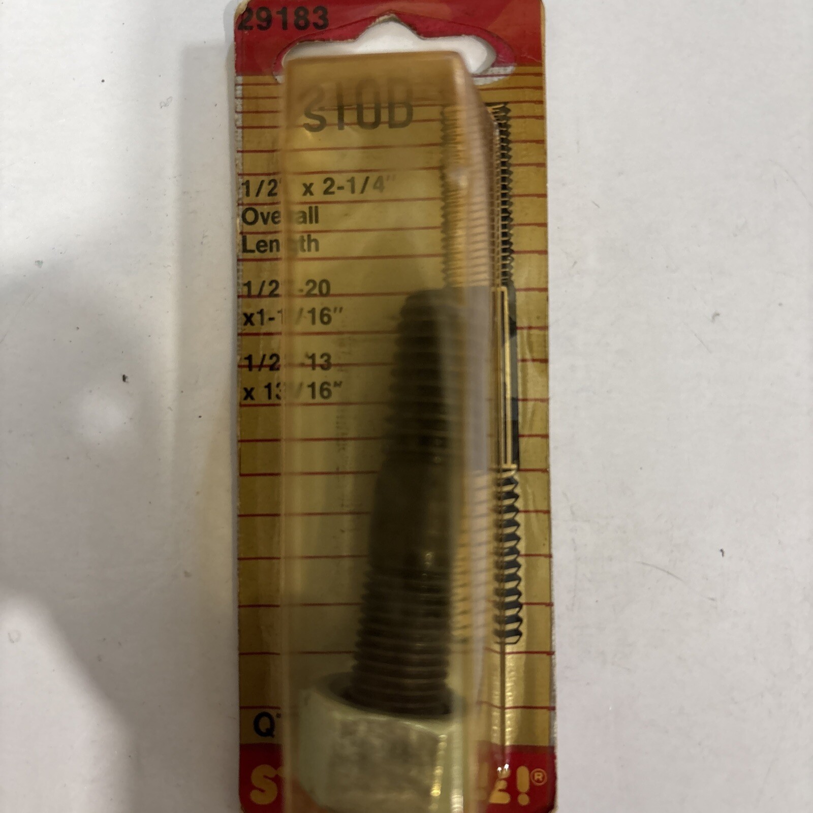 The Dorman Stud-Tite Stud 29183 is a reliable and durable 1/2 inch by 2 1/4 inch stud designed for various automotive applications. Manufactured by Dorman, a trusted brand in the automotive industry, this stud offers high quality and performance. The product is marked with the manufacturer part number 29183 and carries no warranty. Ideal for car and truck parts and accessories, this stud ensures a secure and stable connection in your vehicle's components.