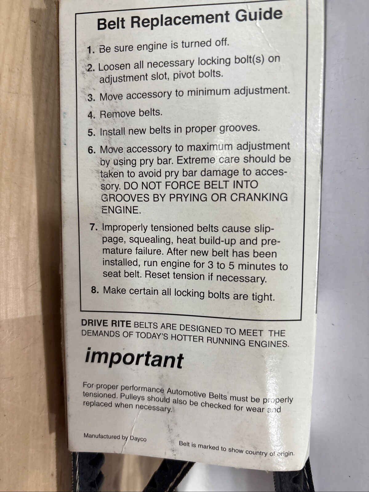 The product is a Drive-Rite V-Belt manufactured by Dayco, with a manufacturer part number of 17505DR. This V-Belt is designed for use in various car and truck models as an accessory belt. Dayco is a well-known brand in the automotive industry, known for producing high-quality belts and other automotive accessories. The Drive-Rite V-Belt is a reliable and durable option for ensuring proper functioning of the vehicle's accessory systems.