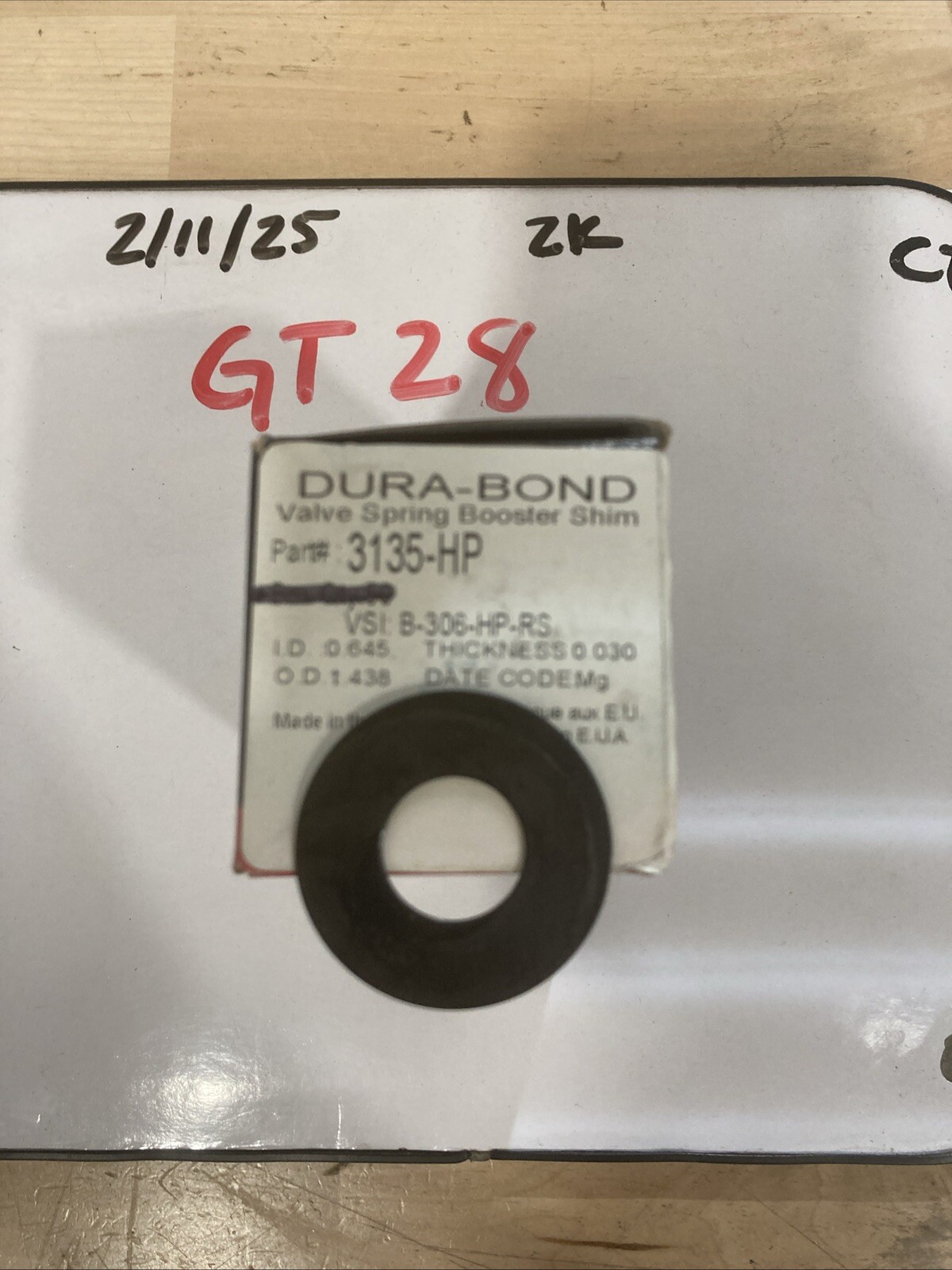 The product is a single Dura-Bond Valve Spring Booster Shim with the manufacturer part number 3135-HP. It is designed as a shim type product by the brand Durabond, specifically made to boost valve spring performance. This shim is intended to be used in engines to enhance the functionality of the valve springs, ensuring smooth operation and optimal engine performance.