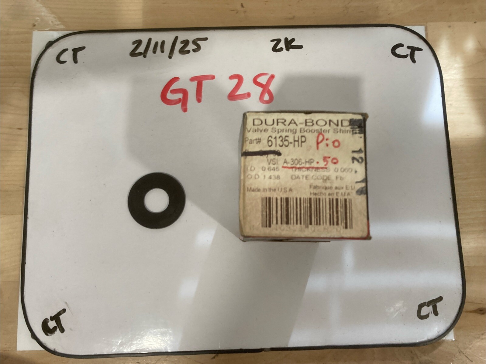 The Dura-Bond Valve Spring Booster Shim 6135-HP is a single shim designed to boost valve spring performance in an engine. Manufactured by Durabond, this shim is specifically intended for use with valves in the engine's valvetrain components. The shim is a durable and reliable product that can help improve the overall performance of the engine by ensuring proper valve function.