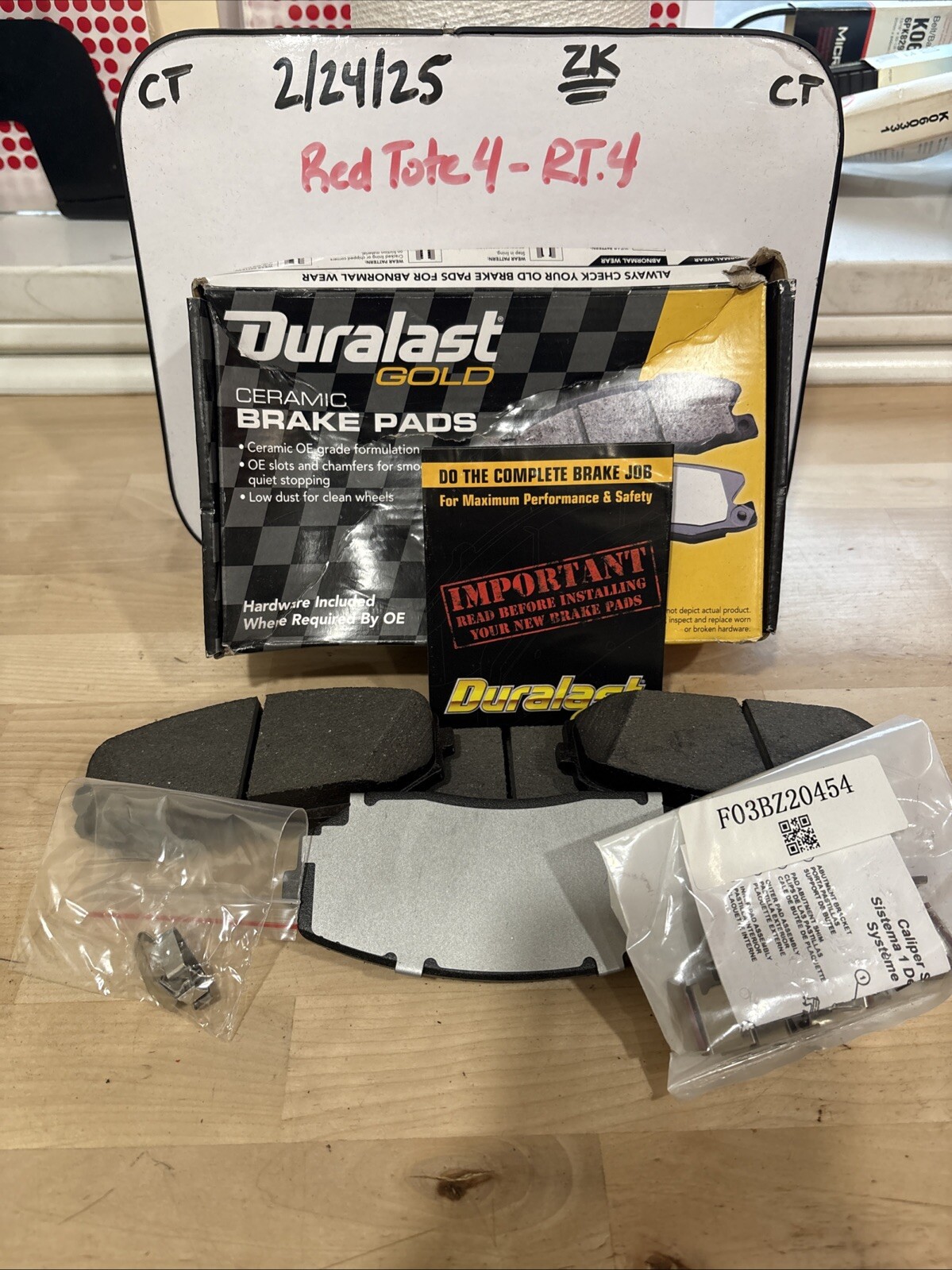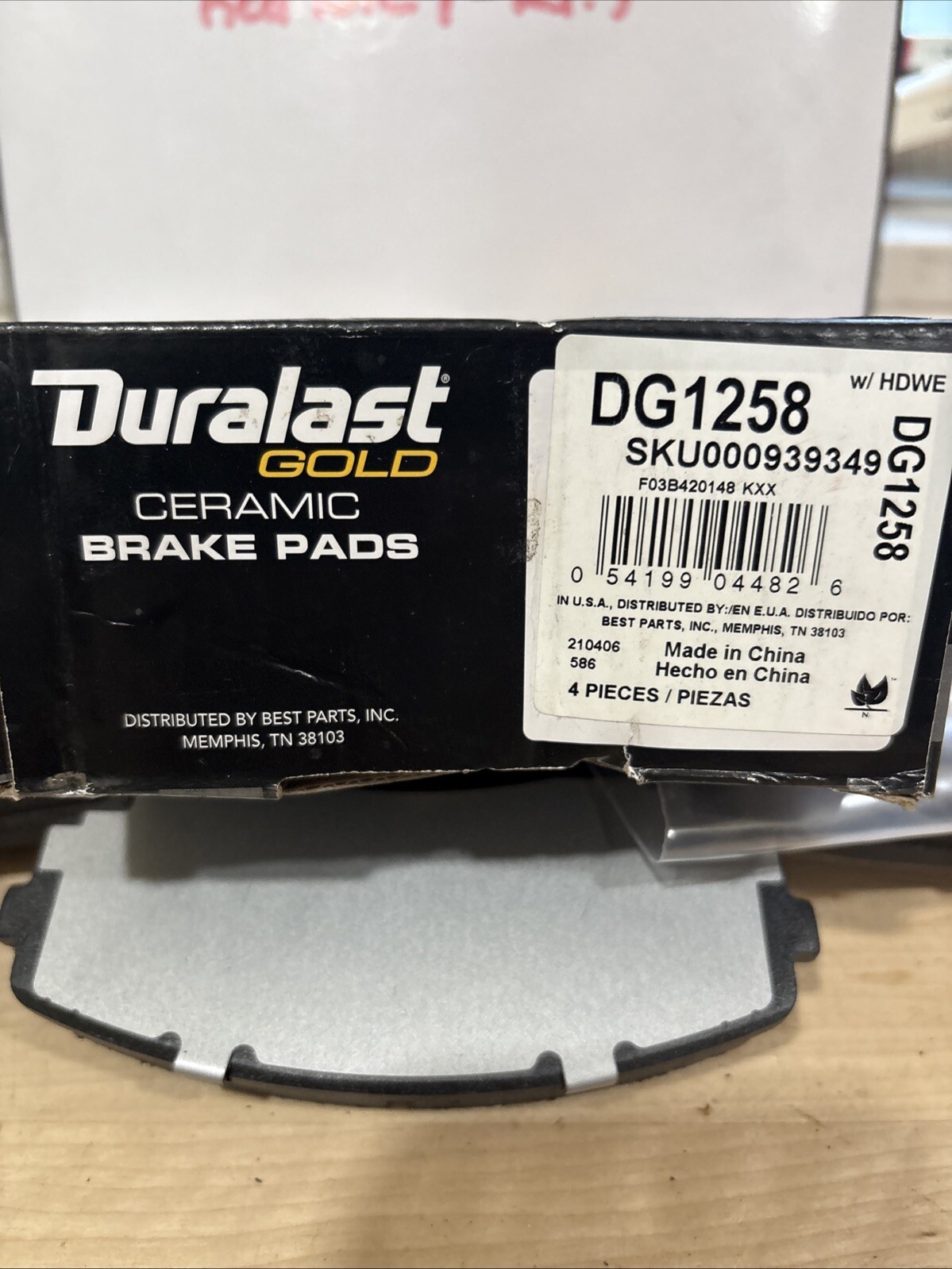 The product is Duralast GOLD Ceramic Brake Pads DG1258, which comes in a pack of 4 and includes hardware. Manufactured by Duralast, these brake pads are designed to produce low dust compared to other materials, making them a cleaner option for your vehicle. The ceramic material used in these brake pads provides reliable and consistent stopping power, offering durability and performance for your braking system.