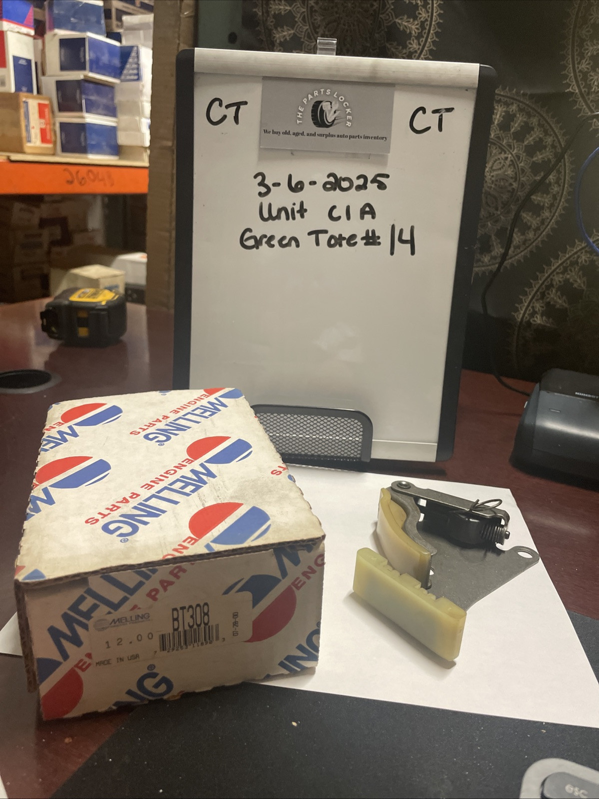 The product is an Engine Timing Chain Tensioner by Melling, specifically model BT308. It is designed to maintain proper tension on the timing chain within the engine. This tensioner is a stock replacement part and comes with an unspecified length warranty. The quantity is one, and the manufacturer part number is BT308. It is a genuine product from Melling, a reputable brand known for its quality engine components.