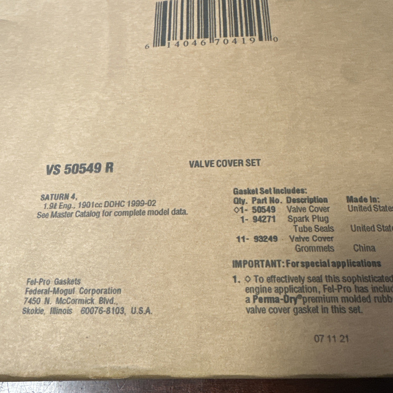 This Engine Valve Cover Gasket Set Fel-Pro VS 50549 R is a high-quality product made for your engine. It is designed to provide a perfect seal for your valve cover and prevent oil leaks. The set includes a valve cover gasket and other necessary items for a complete installation. It is compatible with various engine models and is made to last, ensuring that your engine remains protected for a long time.