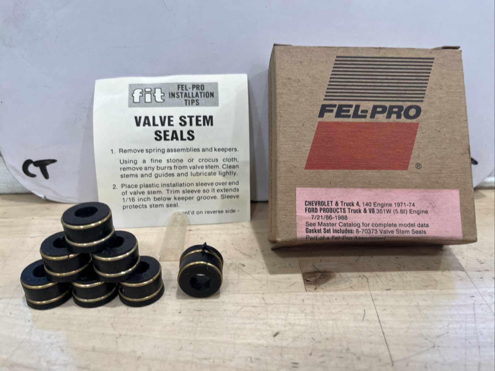 This product is a set of seven engine valve stem oil seals from Fel-Pro, with the manufacturer part number SS 70373. These seals are designed for use in gaskets and sealing systems in car and truck engines. The brand name Fel-Pro is associated with the product, and the number in pack is specified as seven.