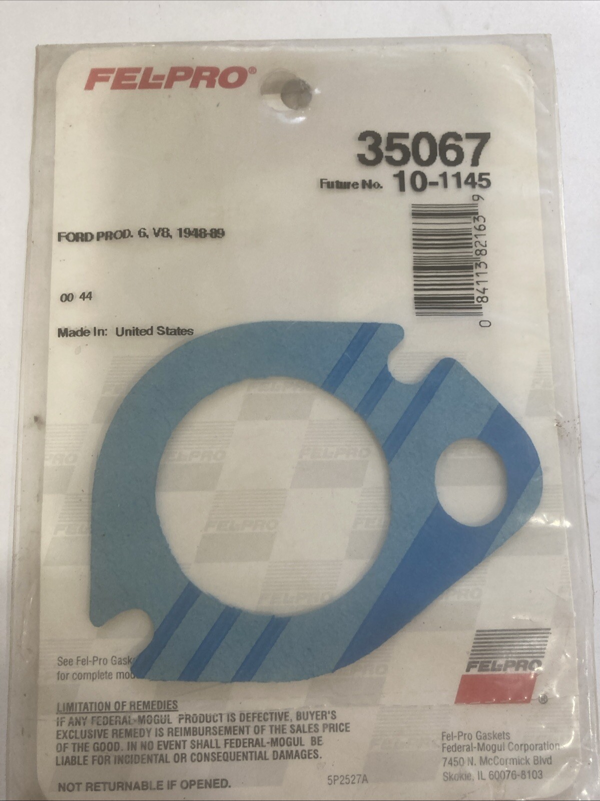 The Fel-Pro 35067 Water Outlet Gasket is a blue gasket designed for engine cooling components. It is a one-size gasket with package dimensions of 5.98×4.02×0.12 inches and weighs 0.03 pounds. This gasket is specifically made for water outlets and comes as a single pack.